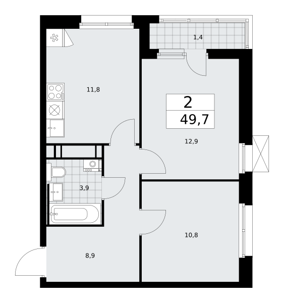 Жилая площадь 24.3 м2, кухня 5.1 м2, квартира без отделки, комнаты изолированные.