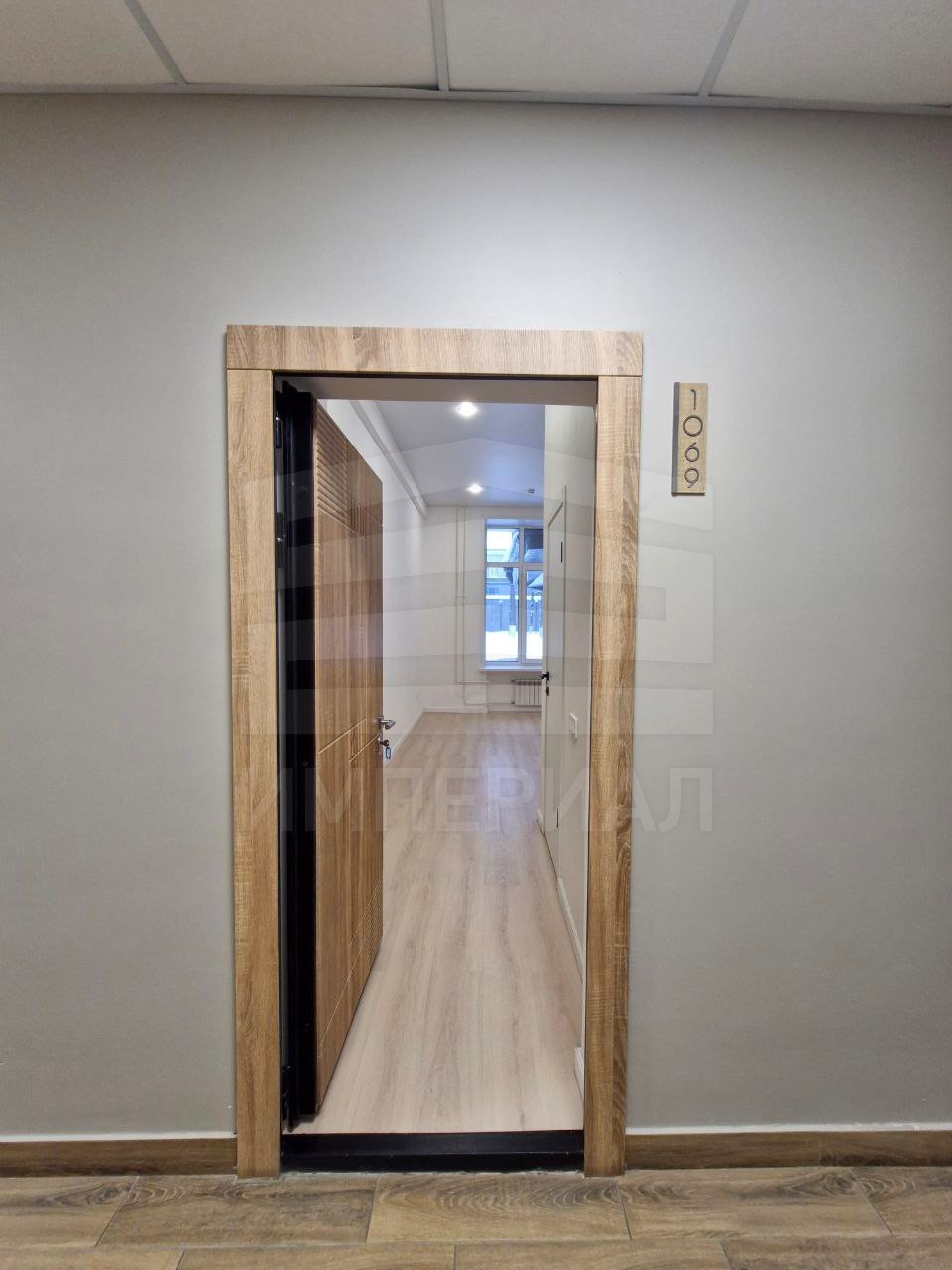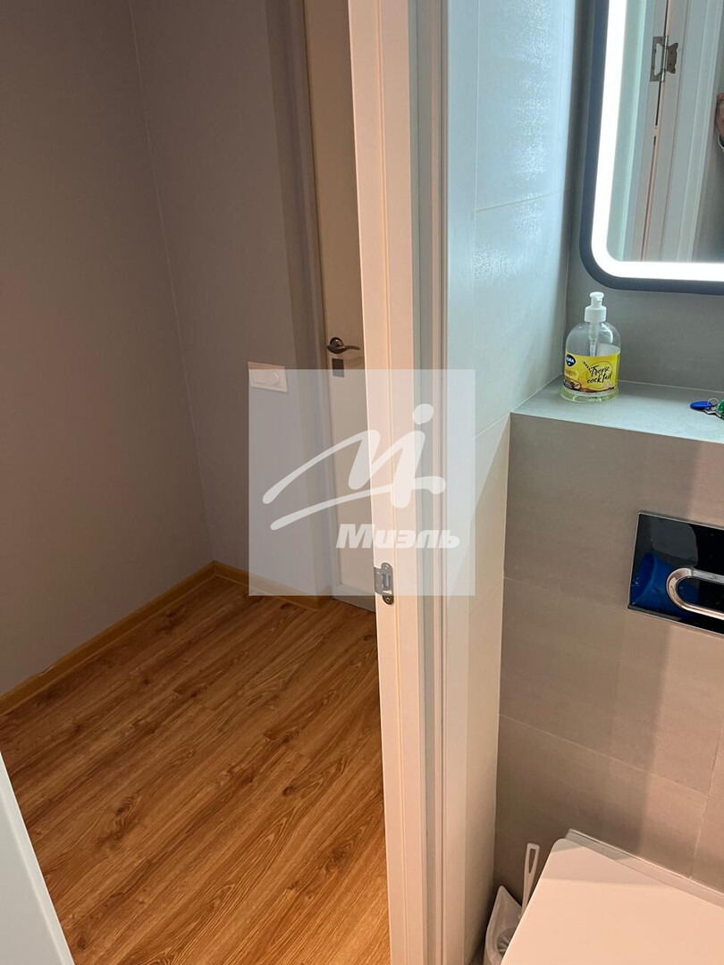 На стенах поклеены обои под покраску, на полу постелен ламинат с плинтусами и откосами. Есть вытяжная вентиляция в санузле и на кухне, выходы хв/гв, место под раковину на кухне. Кроме того, в помещениях уже есть выключатели освещения, розетки для бытовой техники и роутера, а также сделаны закладные для оптоволокна для интернета.