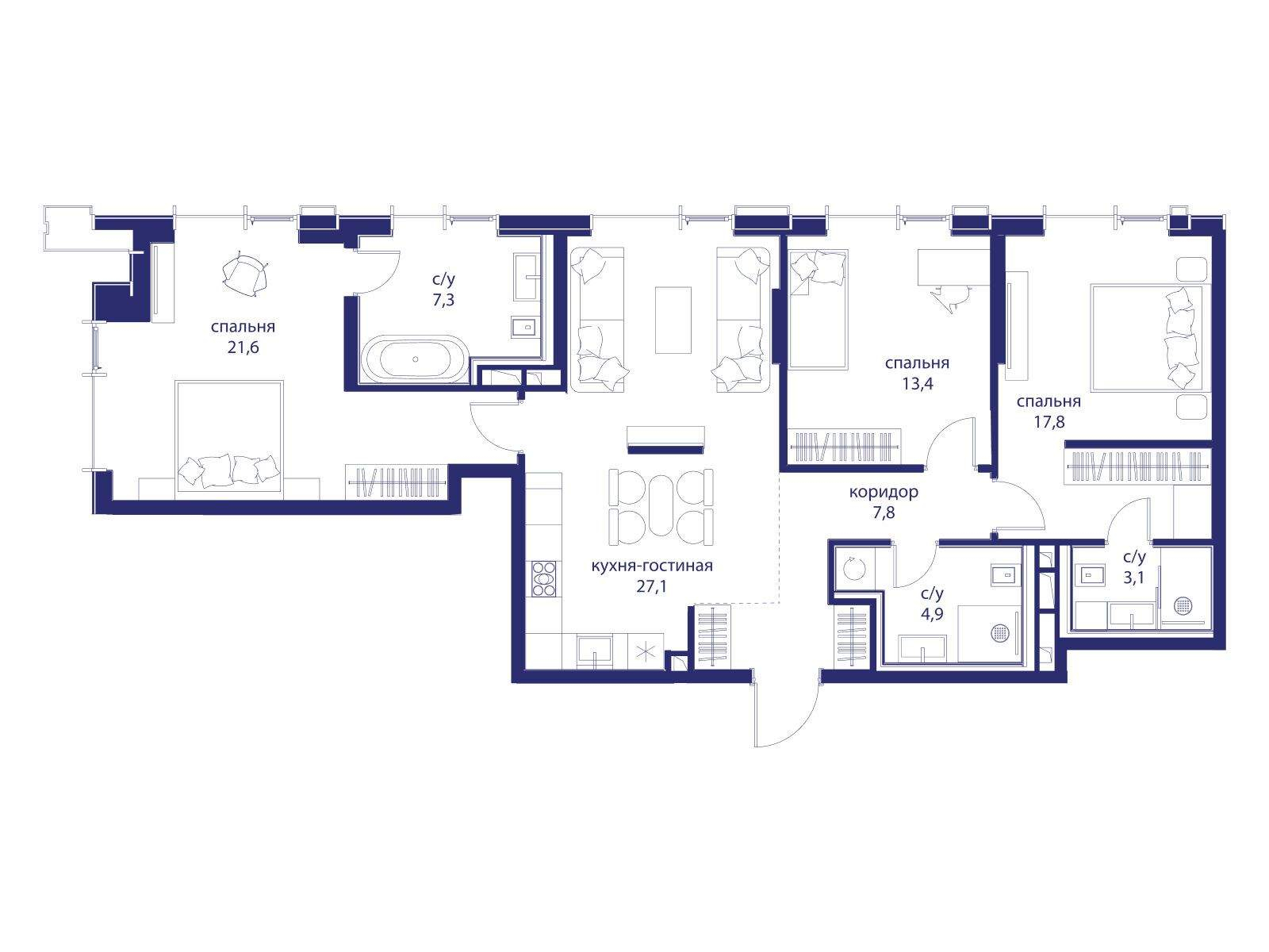 Купить 3к квартиру 103 м² в ЖК Событие