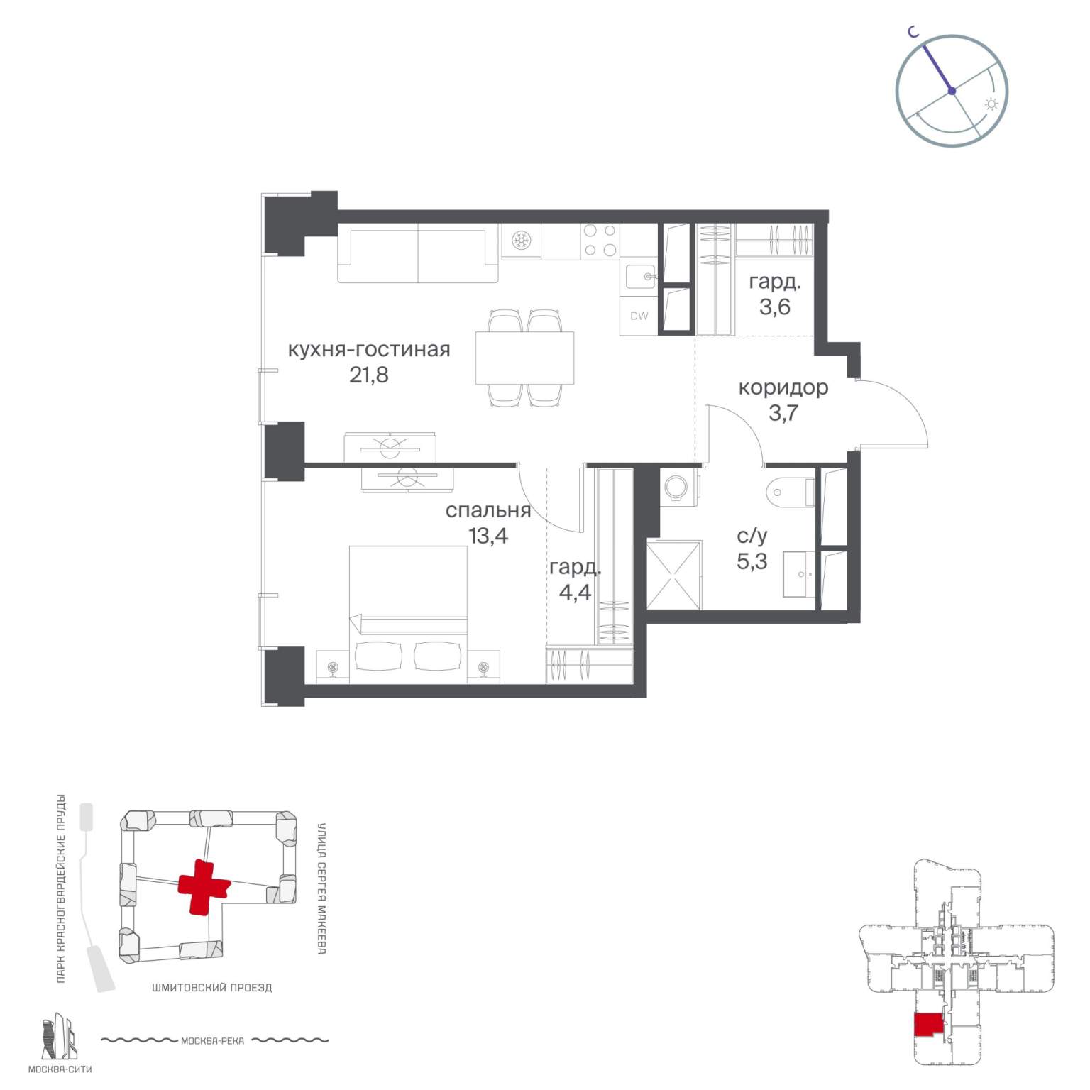 Жилой проект расположен в Пресненском районе Москвы. В пешей доступности находятся станции метро: «Улица 1905 года» (19 минут) , «Москва-Сити» (24 минуты) и «Деловой центр (Выставочная) » (25 минут) .