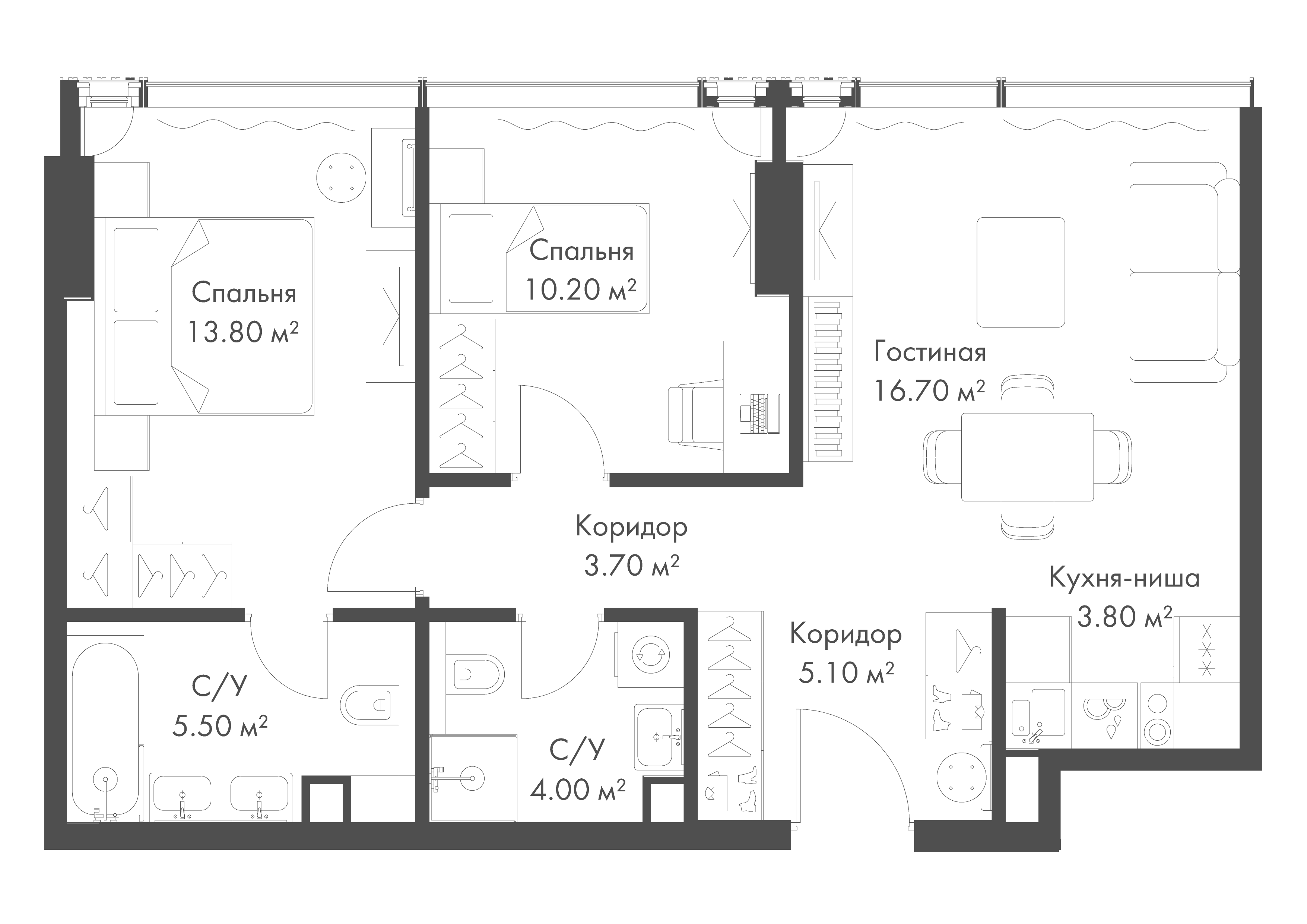 Квартира располагается на 11 этаже 48-этажного дома в ЖК Начало.