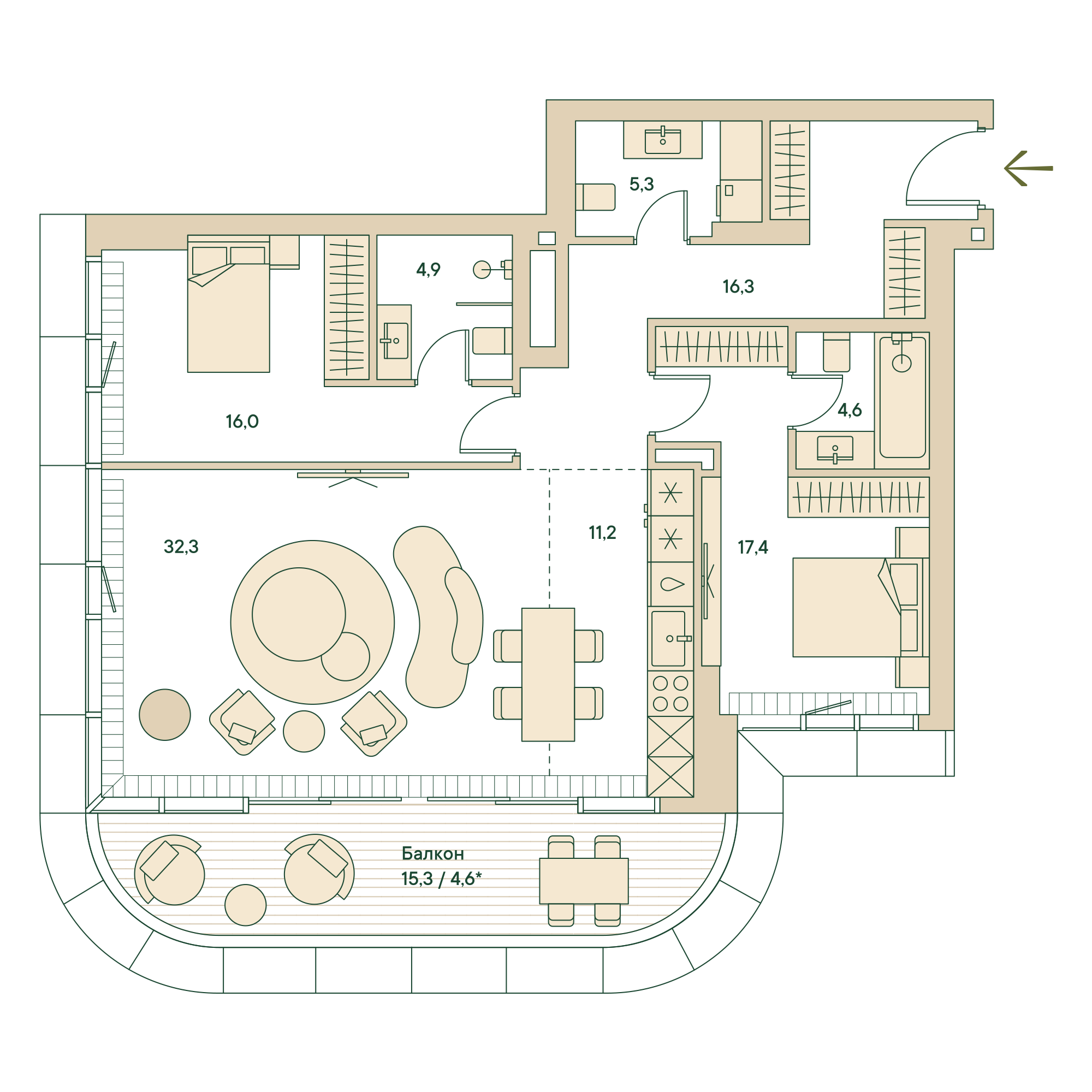 Жилая площадь 82 м2, кухня 25 м2, квартира без отделки, комнаты изолированные, совмещенных санузлов - 1, балконов - 1.
