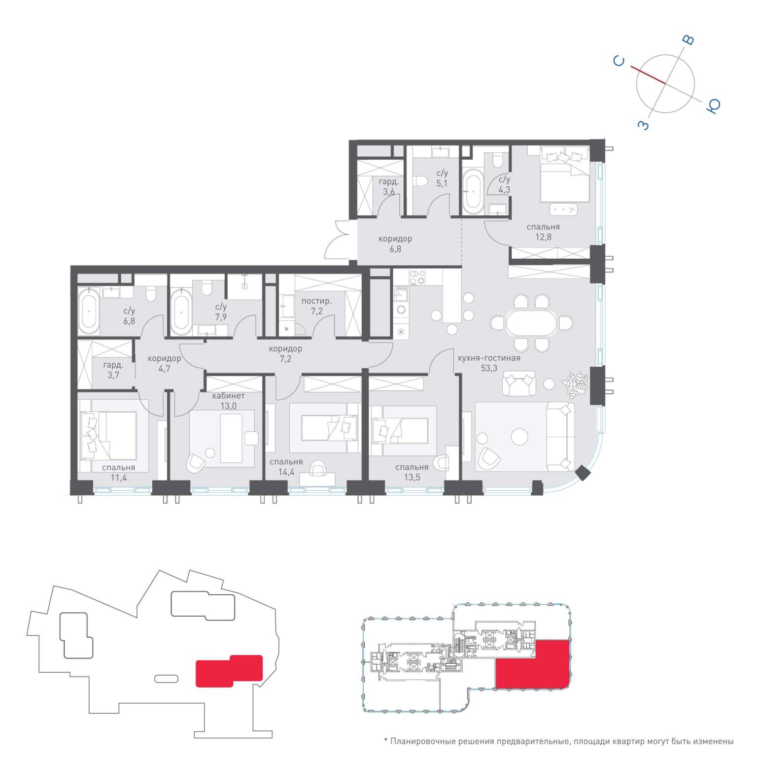 Жилая площадь 138 м2, кухня 11 м2, квартира без отделки, комнаты изолированные, совмещенных санузлов - 1, балконов - 1.