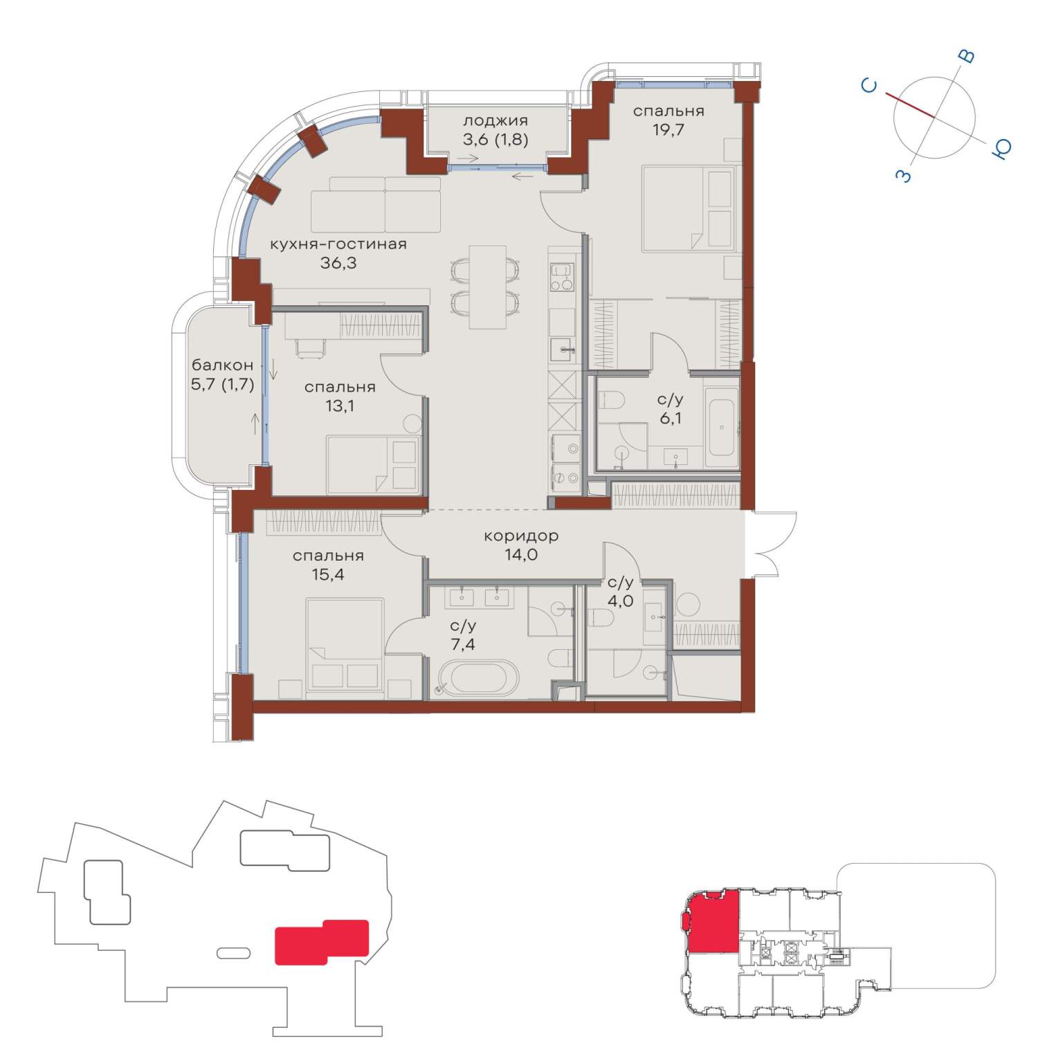 Квартира располагается на 19 этаже 24-этажного дома в ЖК Татарская 35.
