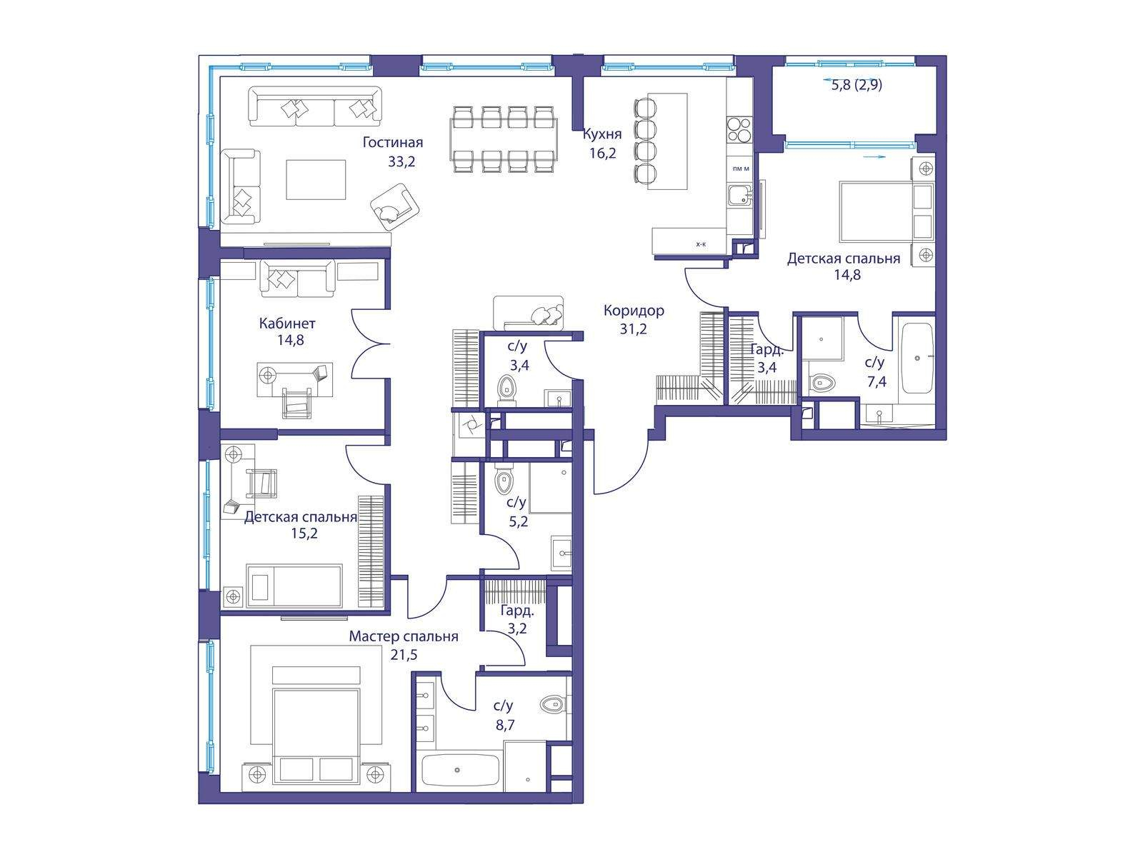 Купить 2к квартиру 129 м² в ЖК Татарская 35