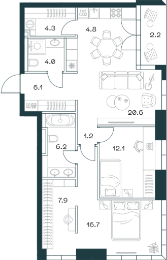 Квартира располагается на 16 этаже 24-этажного дома в ЖК Татарская 35.