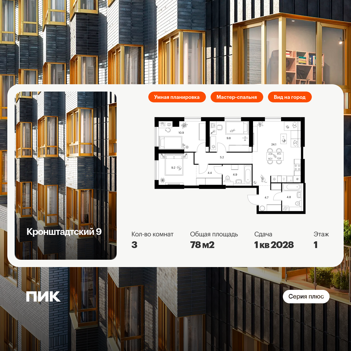 Квартиры с панорамными окнами, террасами, ванными с окнами и каминами редких форматов.