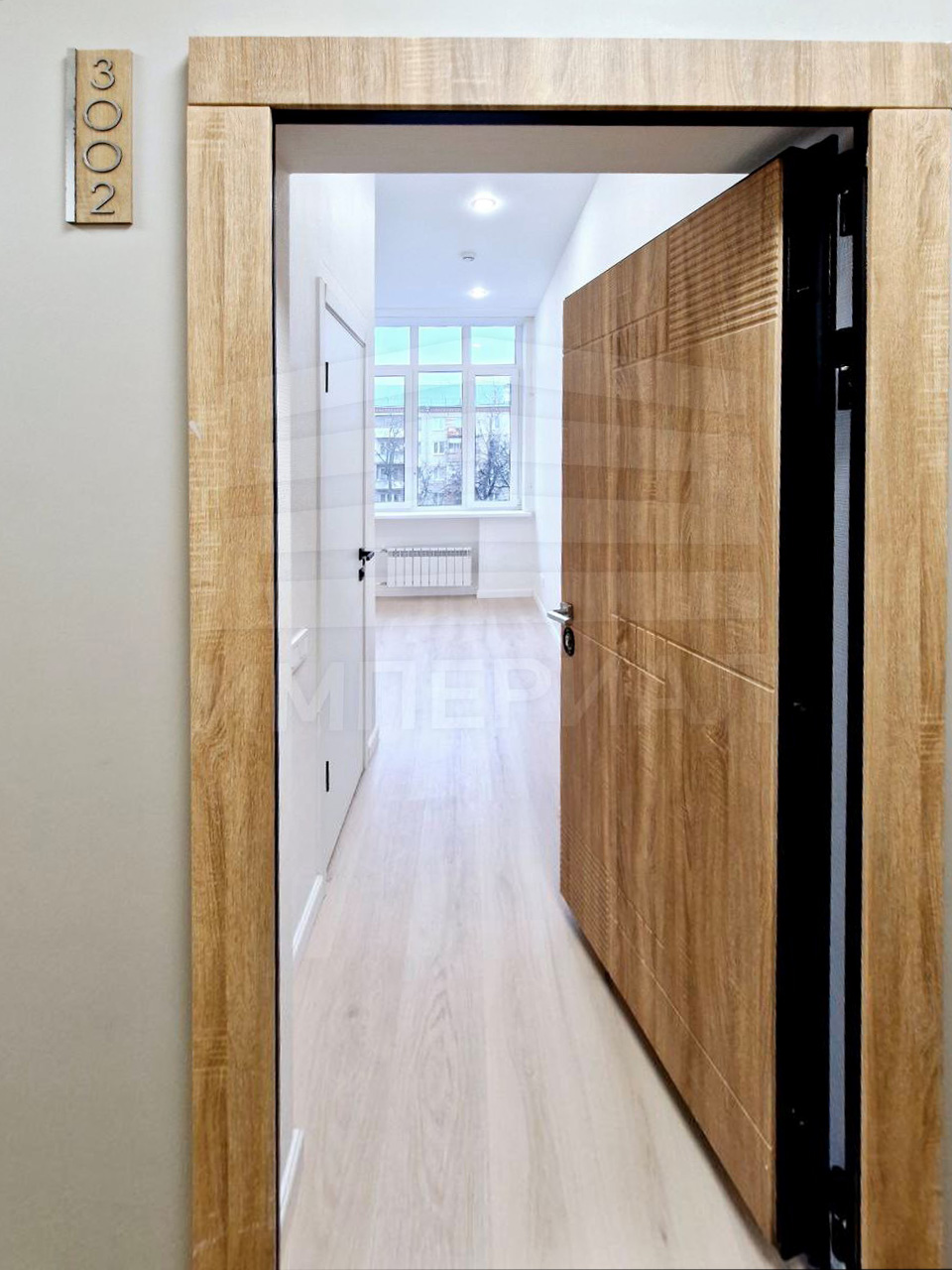 На стенах поклеены обои под покраску, на полу постелен ламинат с плинтусами и откосами. Есть вытяжная вентиляция в санузле и на кухне, выходы хв/гв, место под раковину на кухне. Кроме того, в помещениях уже есть выключатели освещения, розетки для бытовой техники и роутера, а также сделаны закладные для оптоволокна для интернета.