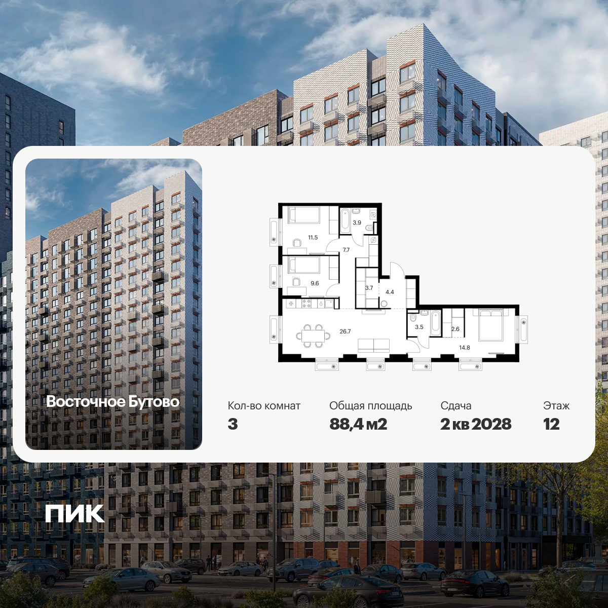 Трехкомнатная квартира 83,7 м в микрорайоне Юбилейный Королева — семейное жилье на ул. Маяковского, 9/18 в наукограде Подмосковья, 20 км от Москвы по Ярославскому шоссе.