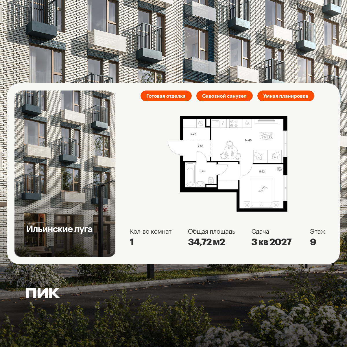 Площадь жилая: 27,9 м