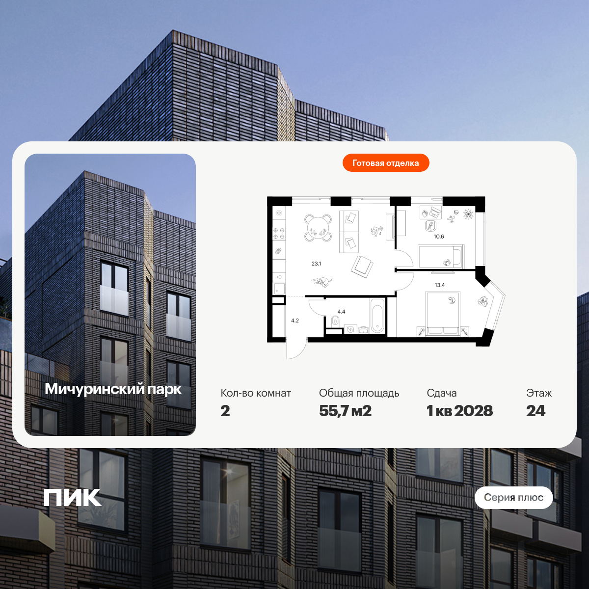 В проекте широкий выбор планировок: от компактных продуманных студий до просторных трёхкомнатных квартир для большой семьи. На выбор доступны форматы с кухней-гостиной, гардеробной и двумя санузлами. Артикул - 820693