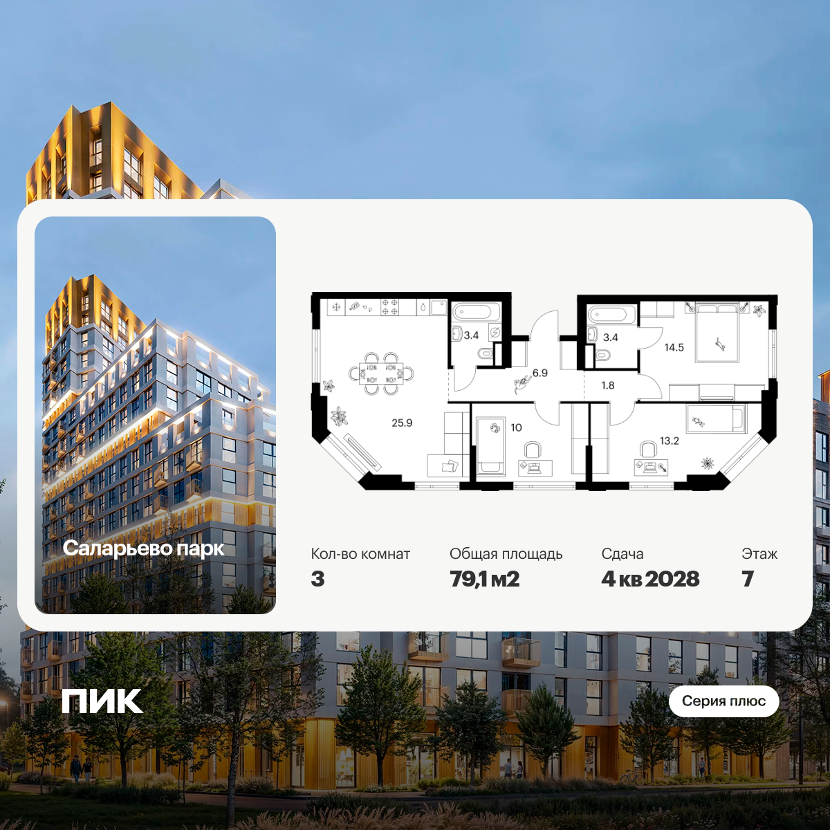 В проекте вы найдёте планировки для разных сценариев жизни: есть квартиры с мастер-спальнями и комнатами, разнесёнными по разным сторонам квартиры. Большие семьи оценят удобные планировки с постирочными и гардеробными. А для тех, кто ценит простор, мы подготовили квартиры с террасами, балконами и лоджиями. Артикул - 1003878