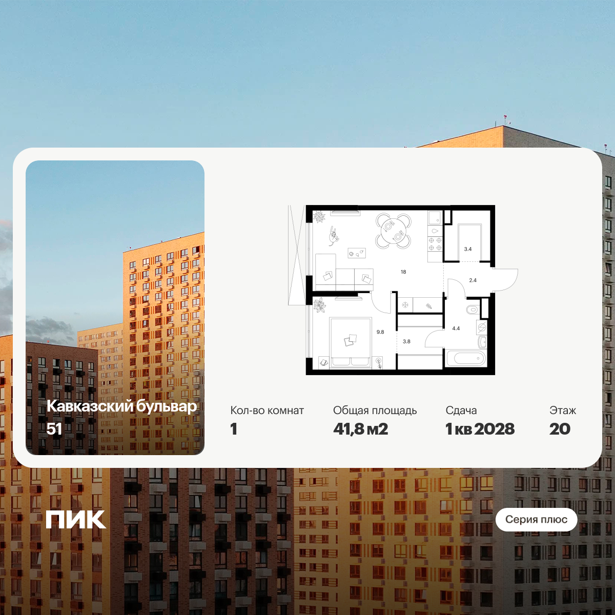 Купить 1к квартиру 33 м² в ЖК Кавказский бульвар 51