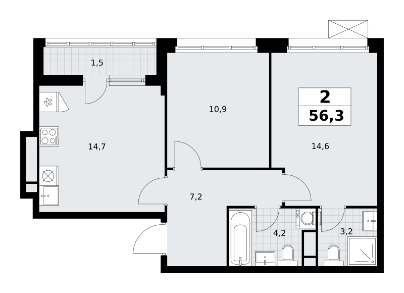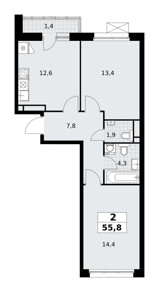 Купить 1к квартиру 41 м² в ЖК 2-й Иртышский