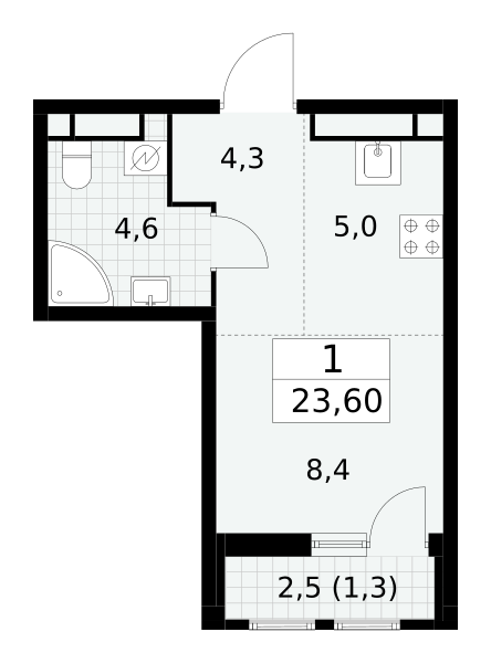 Купить 1к квартиру 33 м² в квартале Кузьминский лес