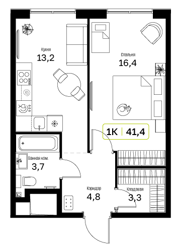 В квартирах продуман каждый метр — мы детально просчитываем все возможные сценарии и способы использовать пространство. Например, большой семье подойдёт квартира с кухней-гостиной, выделенной постирочной и спальнями, разнесёнными по разные стороны гостиной. А кому-то важнее просторная мастер-спальня с гардеробной и собственным санузлом.