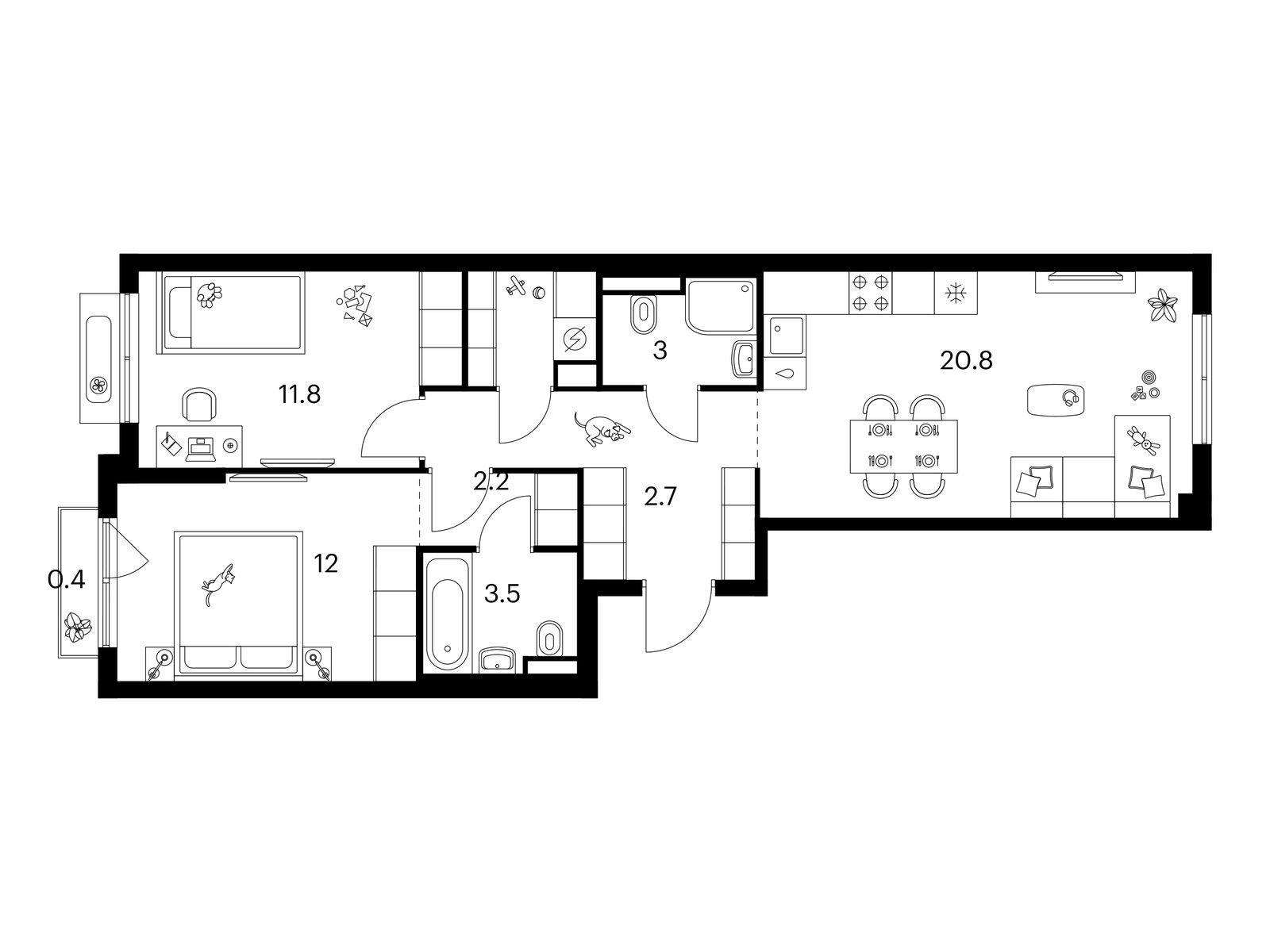 Купить 2к квартиру 51 м² в ЖК Томилинский бульвар