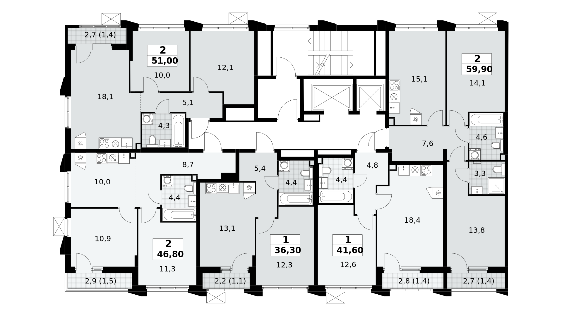 Купить 2к квартиру 46 м² в ЖК Кавказский бульвар 51