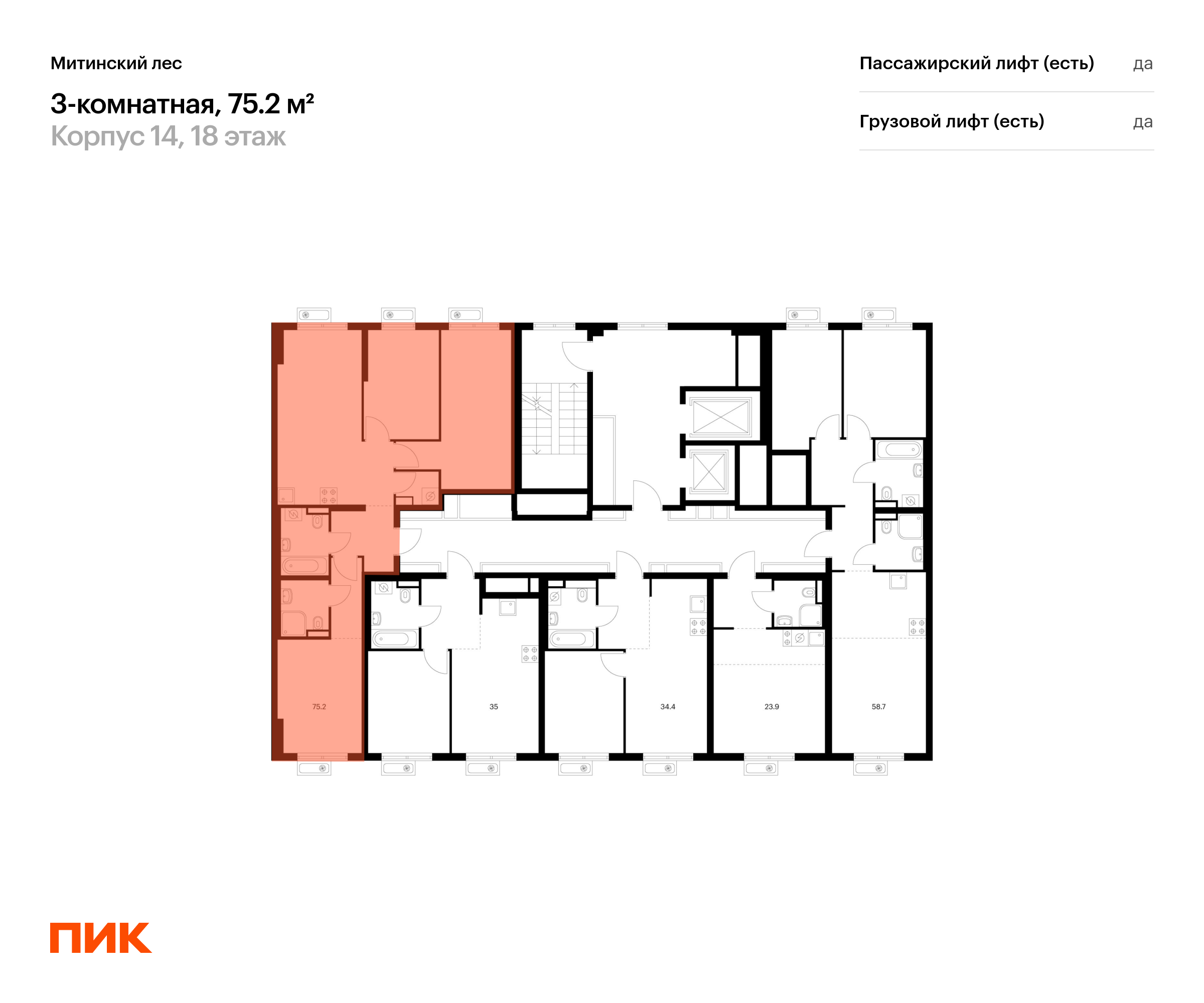 Продаётся 3-комн.квартира площадью 78.70 кв.м на 2 этаже 25 этажного дома (Корпус 15, секция 7) проекта ПИК Митинский лес. Светлый просторный подъезд на уровне земли, функциональная планировка, большие окна.