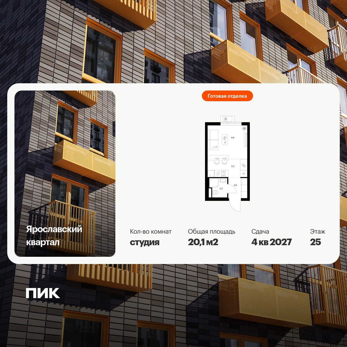 Продаётся квартира-студия площадью 20.20 кв.м на 16 этаже 25 этажного дома (Корпус 16.1, секция 1) проекта ПИК Белая Дача парк. Светлый просторный подъезд на уровне земли, функциональная планировка, большие окна, с отделкой.