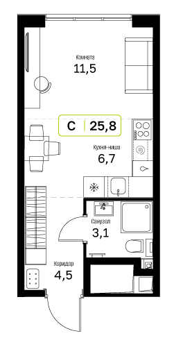 Продаётся квартира-студия площадью 24.80 кв.м на 4 этаже 19 этажного дома (Корпус 16.1, секция 3) проекта ПИК Белая Дача парк. Светлый просторный подъезд на уровне земли, функциональная планировка, большие окна, с отделкой.