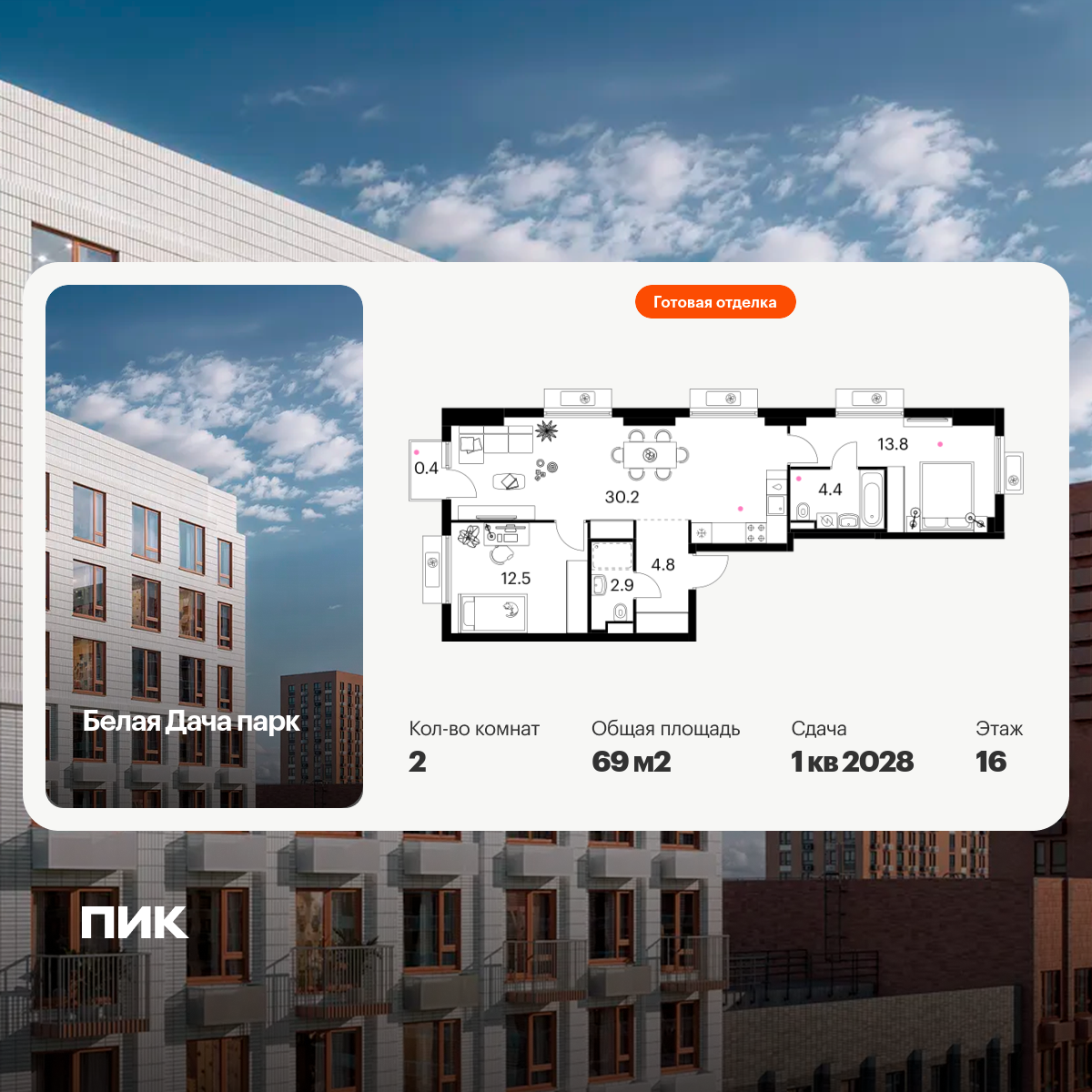 Купить 3к квартиру 83 м² в ЖК Белая Дача парк
