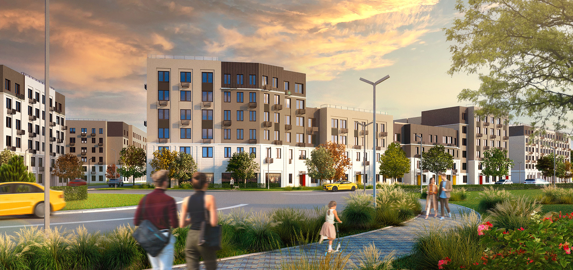 Во дворах — благоустроенные зелёные парки с местами для отдыха, детскими и спортивными площадками. Через квартал протянется широкий пешеходный бульвар для прогулок на свежем воздухе. На первых этажах домов работают магазины, кафе и полезные сервисы. А для владельцев автомобилей предусмотрены подземные паркинги.
