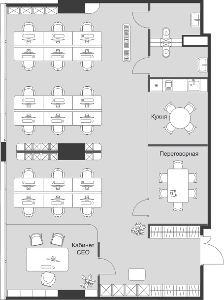 Планировки офисов соответствуют требованиям функционального офиса: глубина помещения - до 10 м, высота потолков - до 3,65 м, шаг колонн - 8,4 х 8,4 м. Окна в пол обеспечат оптимальный уровень инсоляции и предусматривают возможность естественного проветривания.