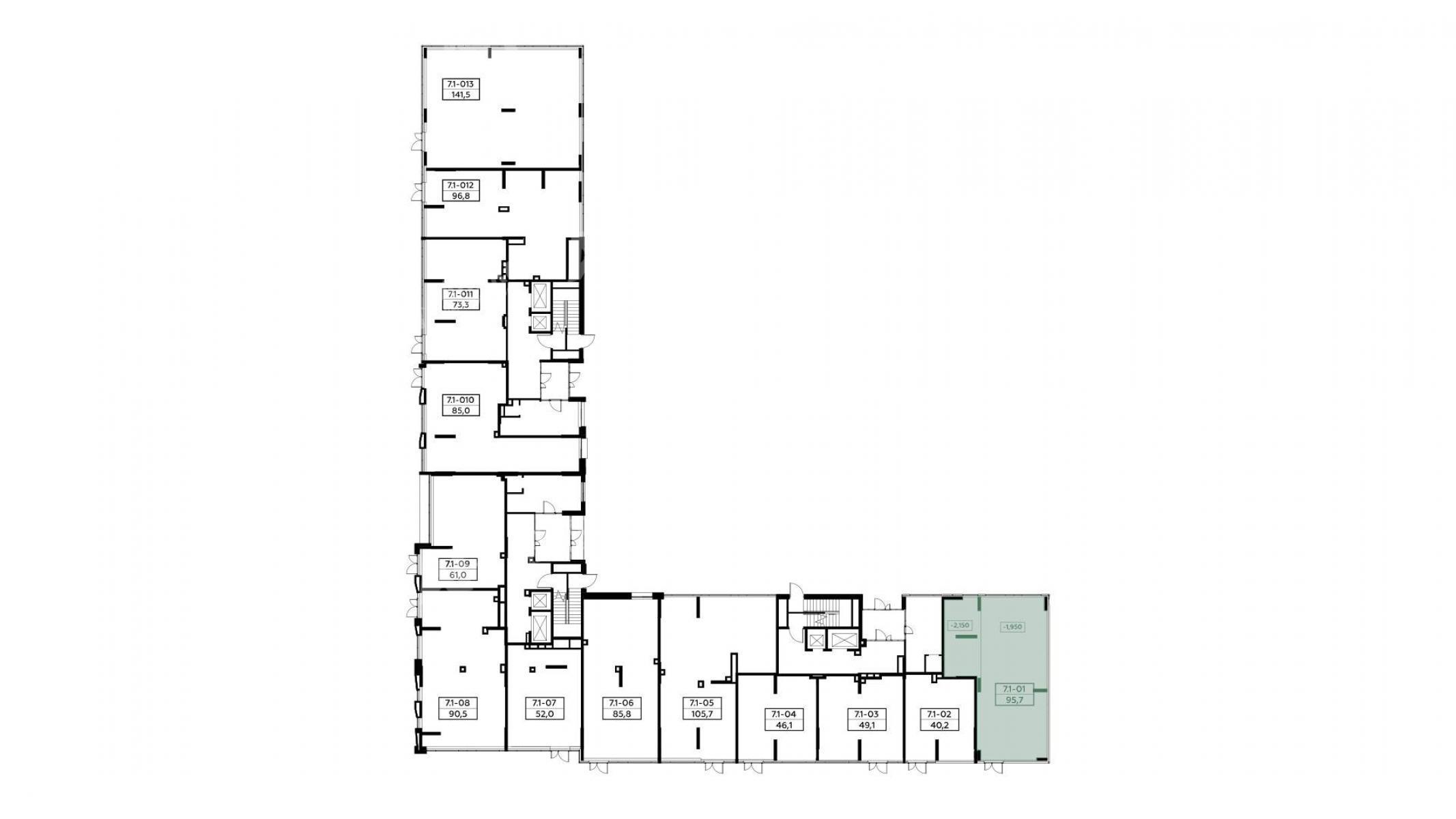 Планировки офисов соответствуют требованиям функционального офиса: глубина помещения - до 10 м, высота потолков - 3,65 м, шаг колонн - 8,4 х 8,4 м. Окна в пол обеспечат оптимальный уровень инсоляции и предусматривают возможность естественного проветривания.