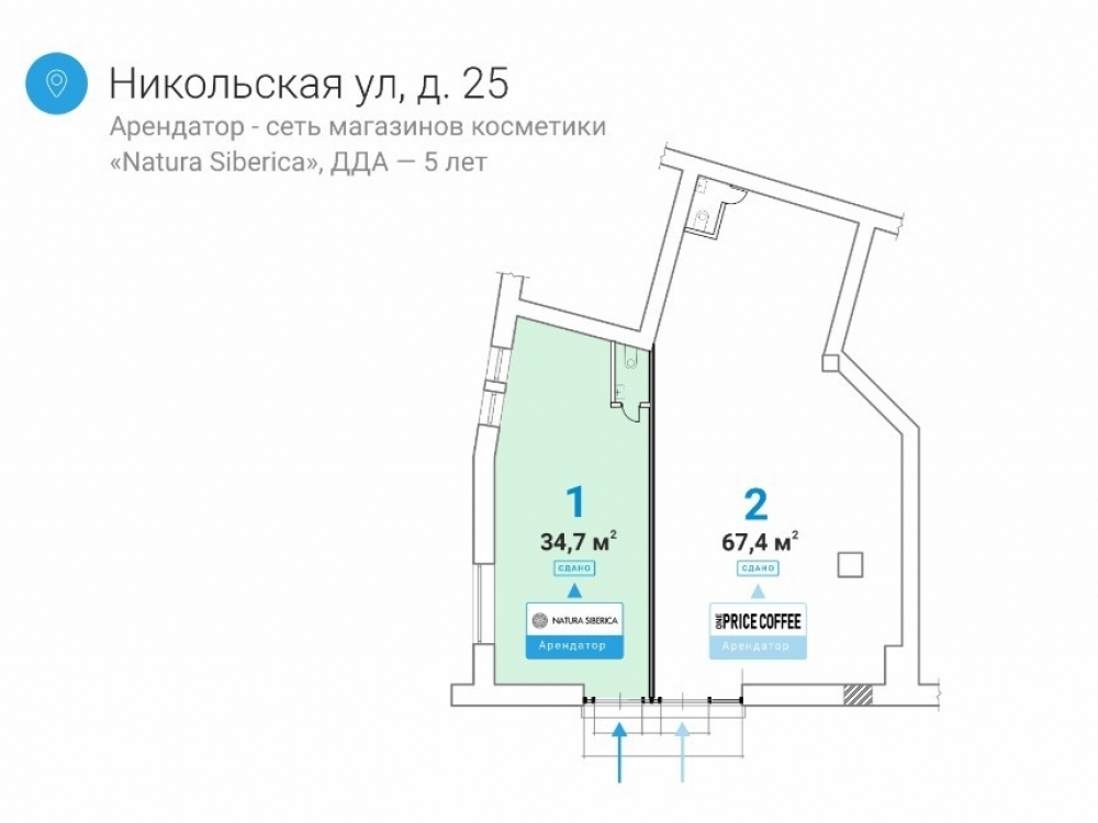 - высокая проходимость: двойной трафик благодаря резидентам (9 тыс. сотрудников) и жителям района (65 тыс. жителей)