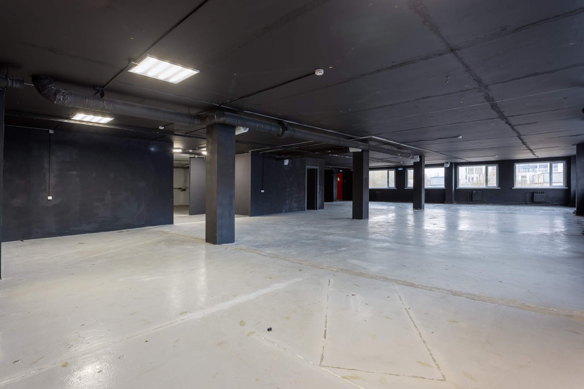 Высота 2.5 м - 3 м. Приточно-вытяжная система, наличие мокрых точек в каждом помещении. На каждом этаже организовано по 2 общественных с/у.