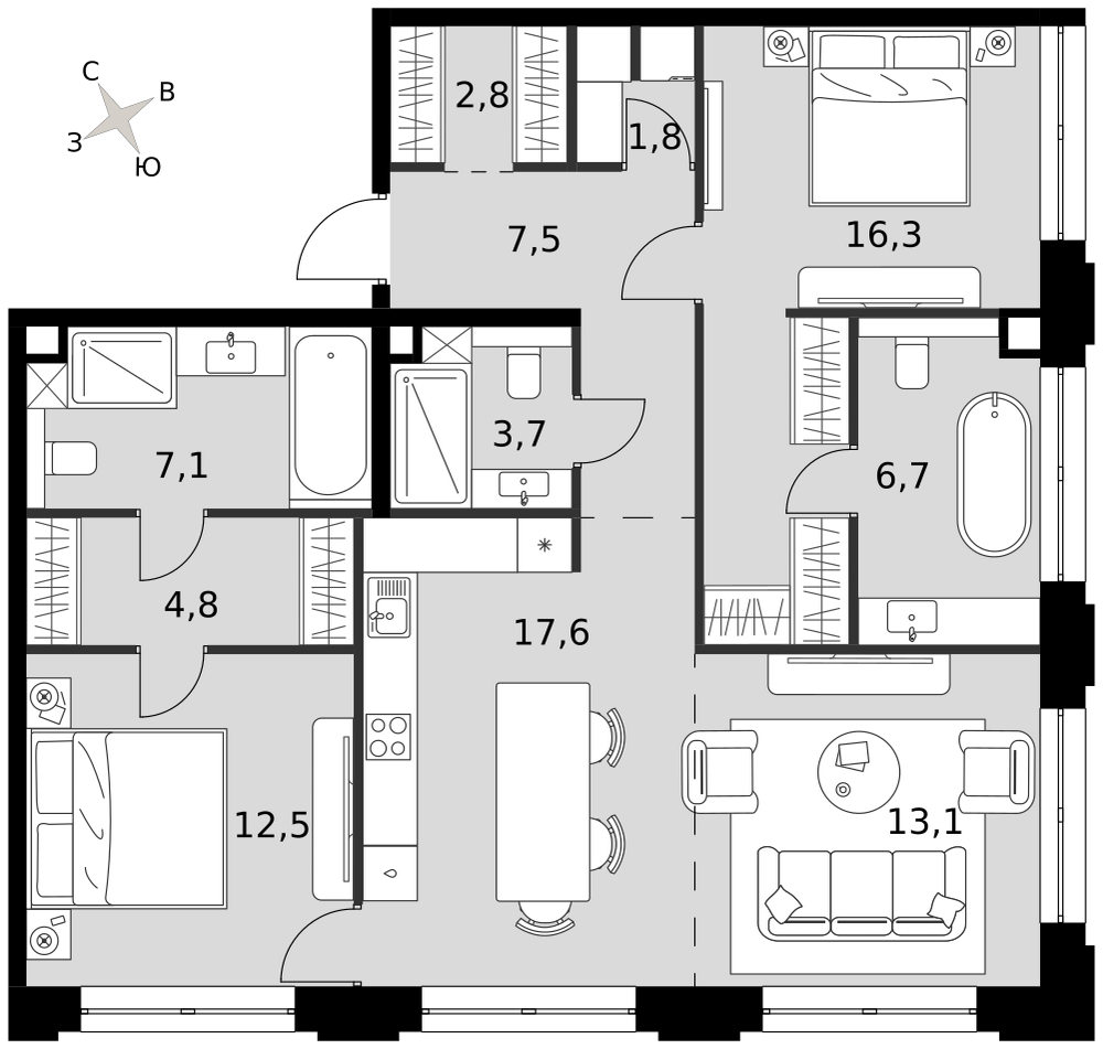 Купить 4к квартиру 143 м² в ЖК Sky House