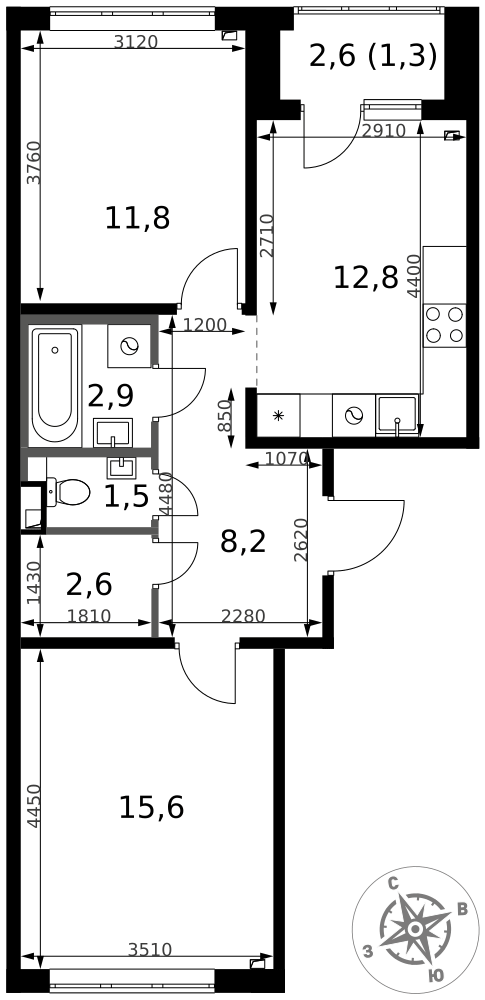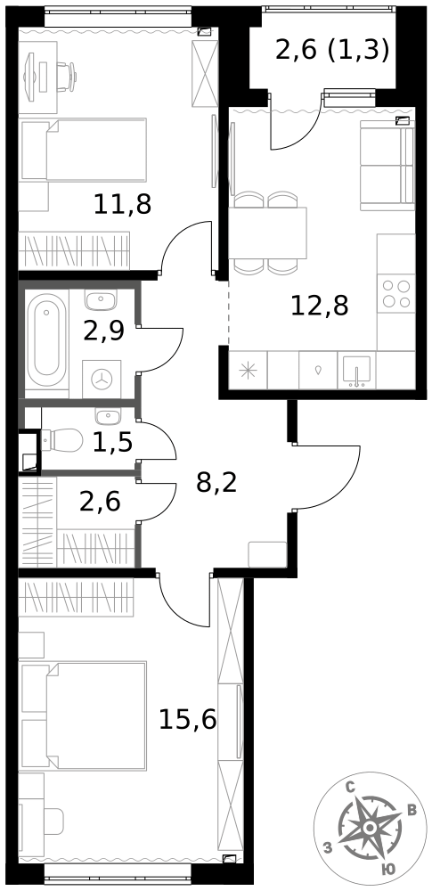 Id 61362. Просторная двухкомнатная квартира с европланировкой в современном районе Котельников