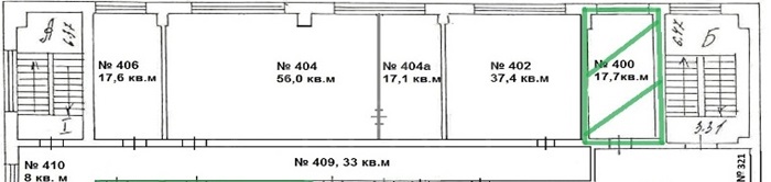Площадь 17,7 м² в административном здании.