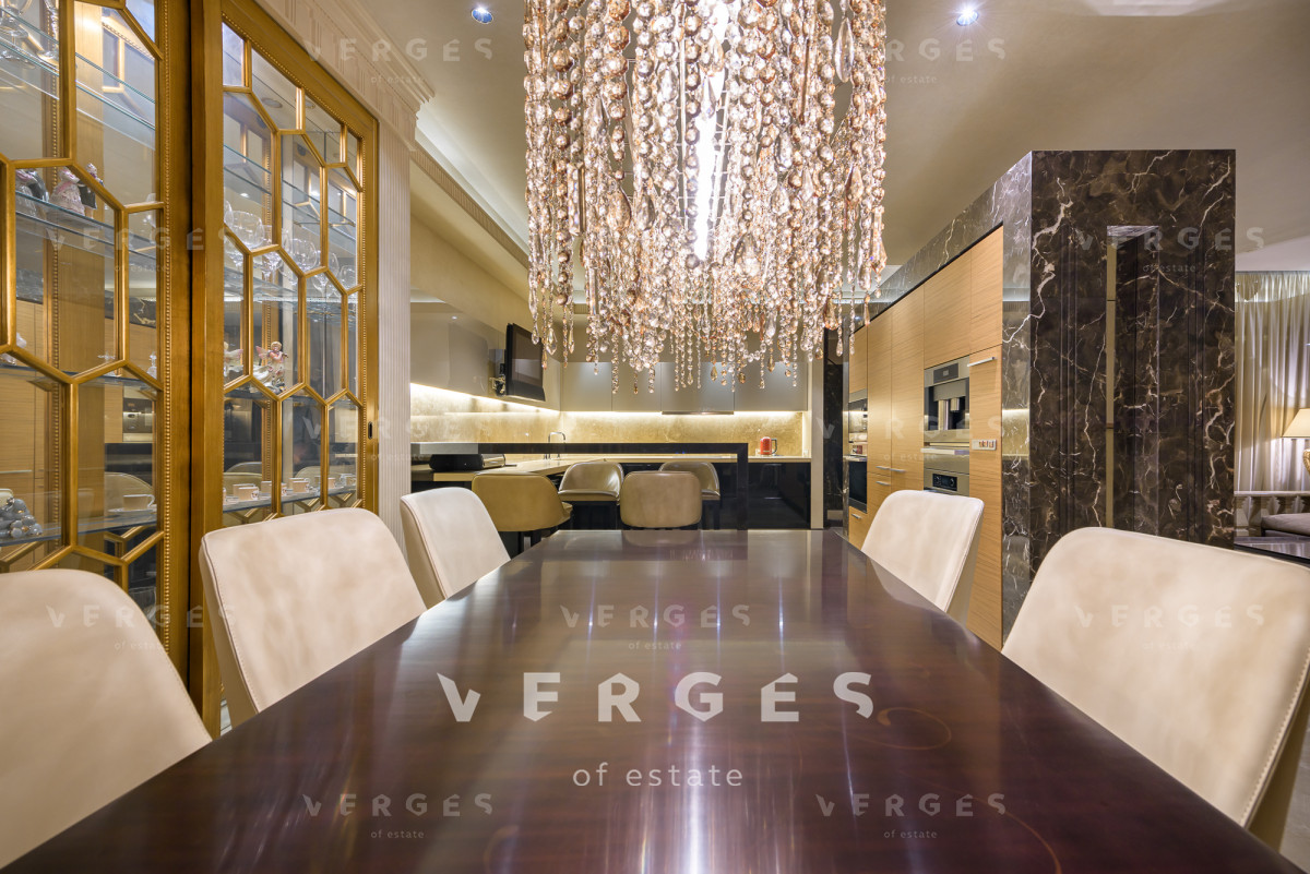 Стильная квартира с настоящим роскошным дизайнерским ремонтом, в отделке использовались исключительно натуральные материалы, каждая деталь интерьера редкая и уникальная, которая обязательно подчеркнет Ваш индивидуальный вкус. Открытые понарамные виды из окон в сторону Мосфильмовского пруда и Москва систи. Эргономичная планировка: просторная кухня-столовая, гостиная, мастер спальня со своим санузлом (ванная и душ) и гардеробной, две детские комнаты, отдельный кабинет, санузел (ванна и душ), гостевой санузел, постирочная комната в прихожей, встроенный шкаф. Отделочные материалы, мебель, техника, аксессуары класса DeLuxe. Диван в гостиной Giorgetti и Smania, люстры Lolli e Memmoli и Baxter, обои из ткани Adnrew Martin, гардеробная и обувница Poliform, кухонный гарнитур Poliform оснащен всей необходимой бытовой техникой Miele и есть в том числе винный шкаф, сантехника в санузлах Villeroy Boch.