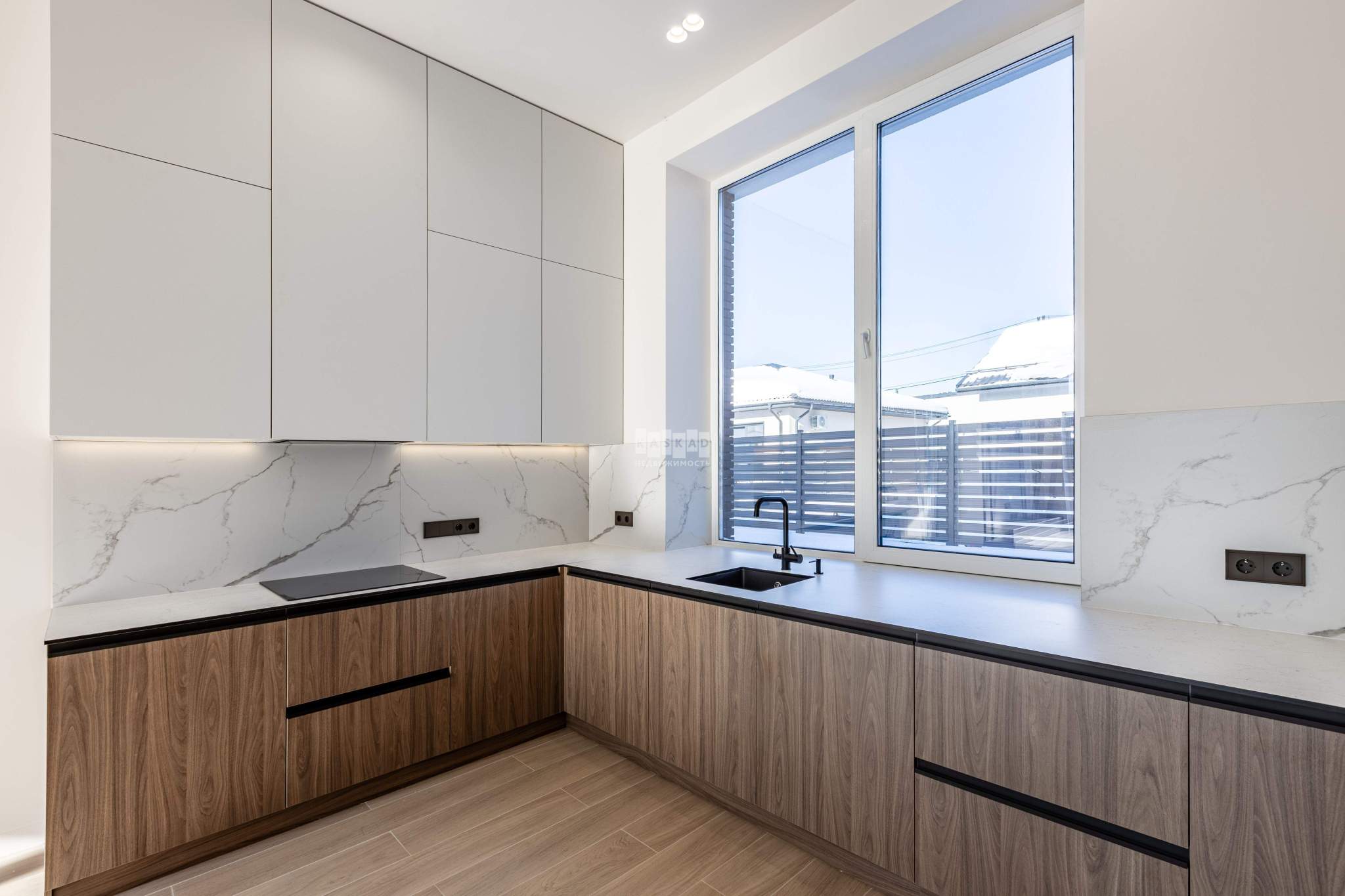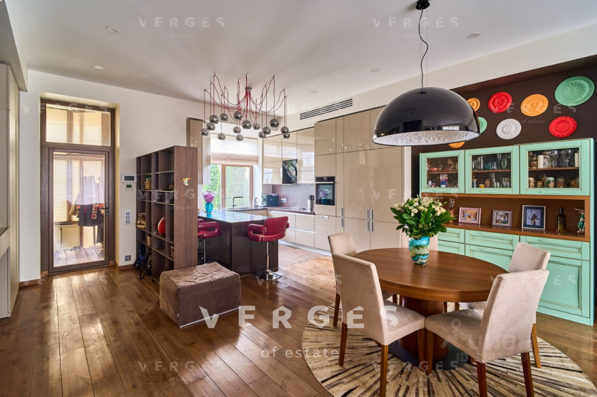 Современный таунхаус в КП бизнес-класса Покровский, расположенный в 23 км от МКАД, готов к комфортному проживанию. Площадь дома с четырьмя спальнями составляет 220 м . Панорамные окна из дерева, большая площадь остекления и высокие потолки создают светлое и просторное пространство. Центральные коммуникации обеспечивают городской комфорт в любое время года: газ, водоснабжение, электричество и канализация. В доме выполнен свежий ремонт с использованием натуральных материалов, таких как натуральное дерево и мрамор. Установлена качественная встроенная и отдельностоящая техника от известных брендов, включая Miele, Neff и Liebherr, а также сантехника от Hansgrohe. Дом оснащен корпусной и встроенной мебелью известных производителей. Для отопления используется погодозависимый котел Beretta с медной разводкой, радиаторы Arbonia, водяные теплые полы из сшитого полиэтилена ТеСе и центральное кондиционирование Mitsubishi. Также установлена продвинутая система водоочистки и умягчения воды Экодар. Дом имеет продуманную планировку, идеально подходящую для большой семьи. На первом этаже расположены входная группа, гостиная с кухней, столовая с выходом на ухоженный участок с зоной барбекю и релакса, санузел, гараж с выходом в прихожую, бойлерная и постирочная с душевой. На втором этаже находятся мастер-спальня с санузлом, гардеробной, кабинетом и спортзалом, а также три спальни и санузел. Над гаражом расположена функциональная кладовка, не занимающая жилое пространство и доступная с лестницы. Ухоженный участок с аккуратным газоном, взрослыми хвойными деревьями и кустарниками включает зону барбекю и беседку. На благоустроенной территории поселка есть красивая парковая зона, детские и спортивные площадки, теннисный корт и озеро с обустроенной пляжной зоной. В поселке обеспечивается высокий уровень безопасности благодаря круглосуточной охране и видеонаблюдению. На въезде установлен КПП с современной пропускной системой. В пешей доступности находятся магазины, детский сад, школа, аптека, салон красоты, рестораны и другие объекты инфраструктуры. Остановка общественного транспорта расположена в 200 метрах от КПП. Цена указана в договоре полностью. Документы готовы к сделке.