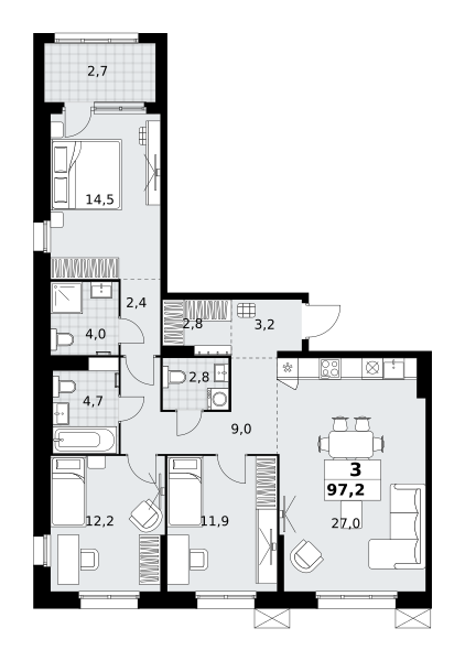 Купить 3к квартиру 81 м² в ЖК Дзен-кварталы