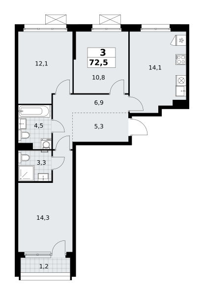 Купить 3к квартиру 88 м² в ЖК Дзен-кварталы