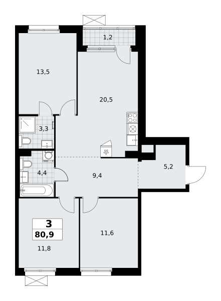 Продаётся 3-комнатная квартира, площадью 72,6 кв. м на 10-м этаже дома комфорт-класса в ЖК "Прокшино". Квартира с функциональной планировкой: большие окна, высота потолка 2,95 м, балкон, мастер-спальня.