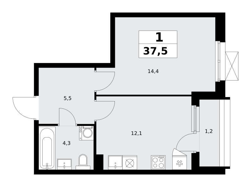 Купить 1к квартиру 31 м² в ЖК Прокшино