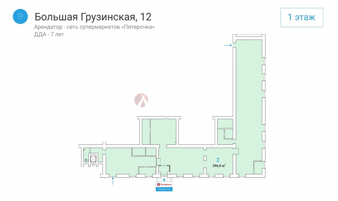==ЛОТ 224823 == ОТ СОБСТВЕННИКА, БЕЗ КОМИССИИ. Арендный бизнес, показатели: МАП (месячный арендный поток) 1950000руб. ГАП 23400000 руб. Предлагается на продажу коммерческое помещение с отдельным входом, расположенное по адресу. Площадь объекта составляет 384,8 м?. Помещение находится на первом этаже здания, высота потолков составляет 4 метра. Текущий арендатор - сеть магазинов "Пятерочка". Размер арендной платы составляет 1 950 000 рублей.