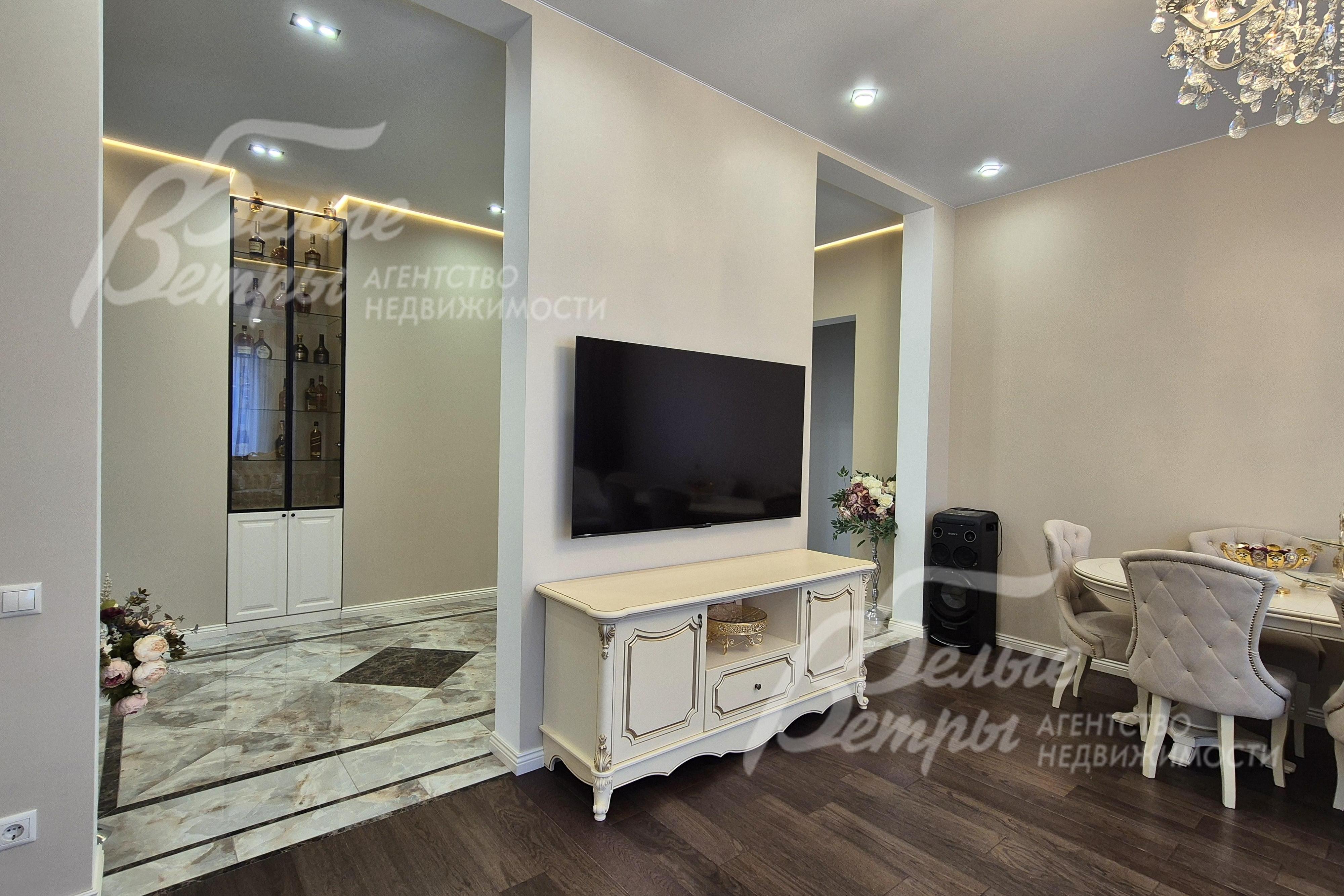 Внутренняя отделка: отделка в современном классическом стиле. Полы - керамогранит (теплый пол), в гостиной дубовая паркетная доска, в спальнях - ламинатная доска 12см. Потолки натяжные. На стенах обои с эффектом шелкографии. Электрический камин. Качественная сантехника. Высота потолков 3.05 м.