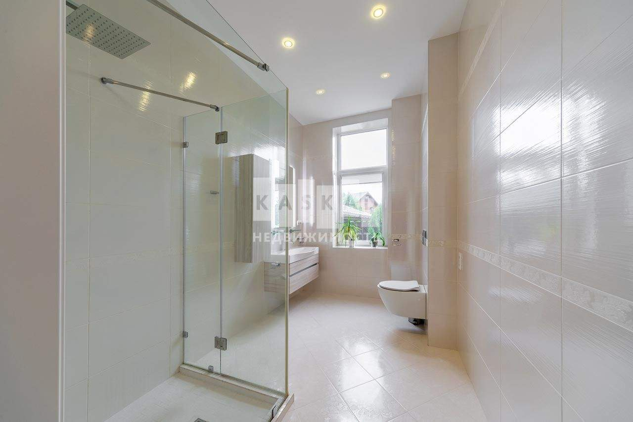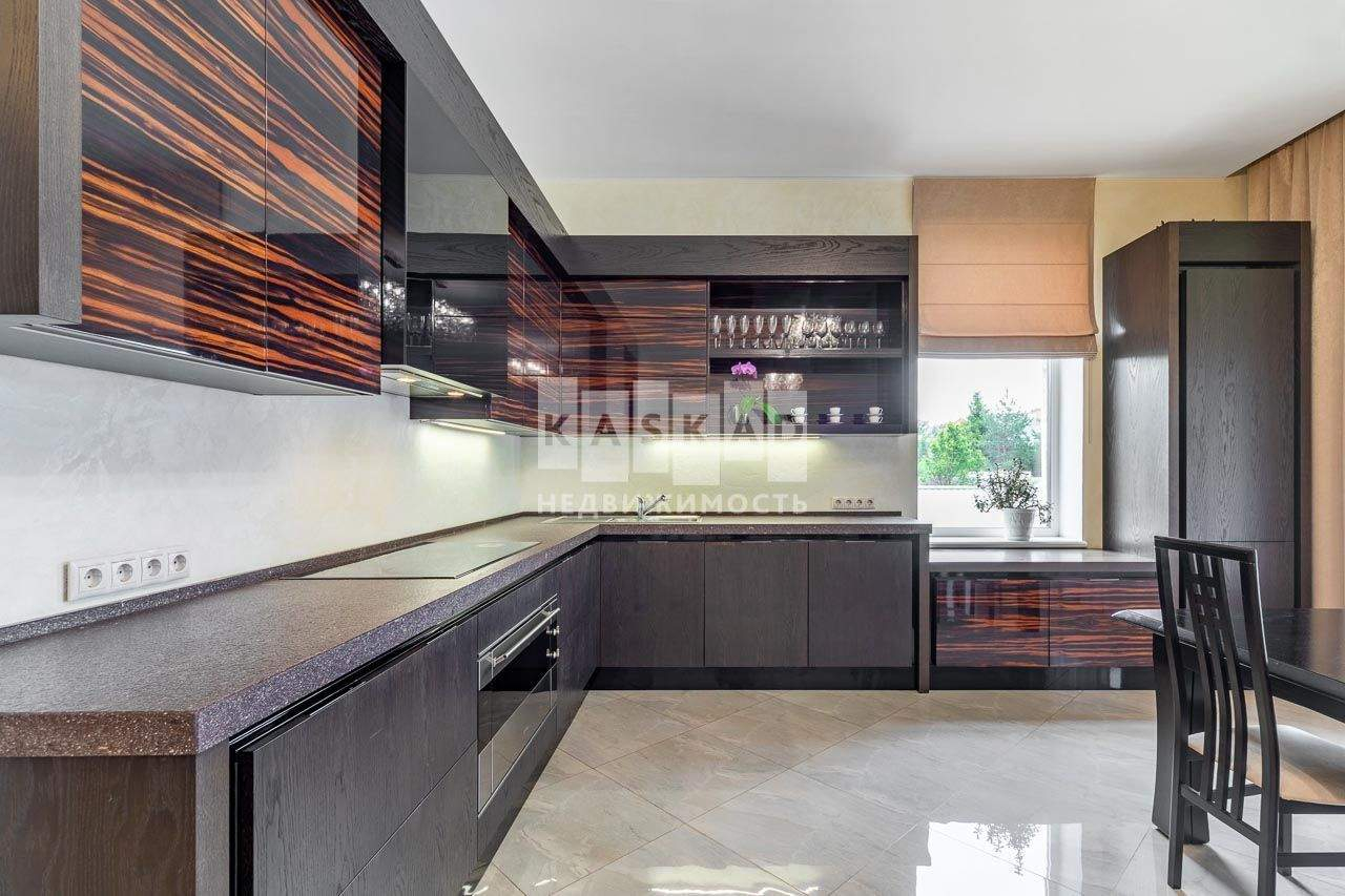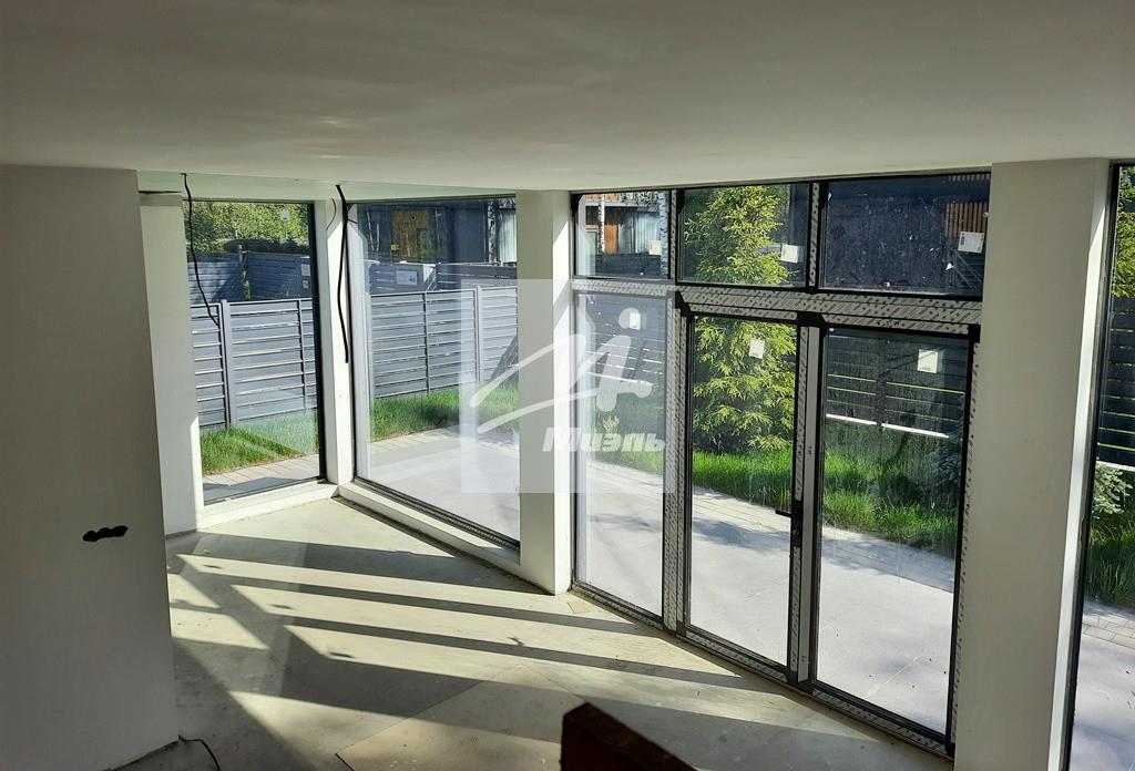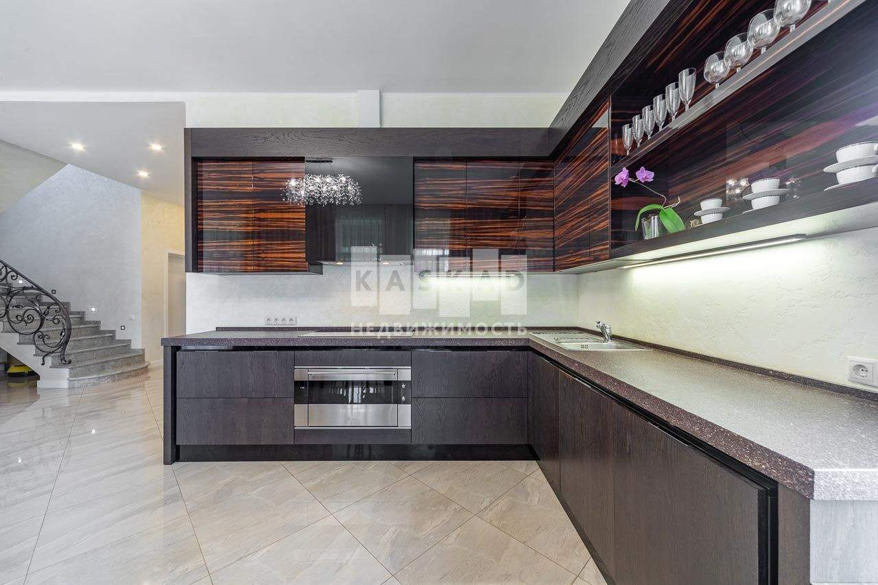 На первом этаже расположена просторная кухня-гостиная площадью 45 м с высококлассным итальянским кухонным гарнитуром и каменной столешницей парфир. Также здесь есть гостевая комната 15 м, санузел 8 м и бойлерная (прачечная) 8 м. Кухонная техника именитых брендов SMEG и Liebherr.