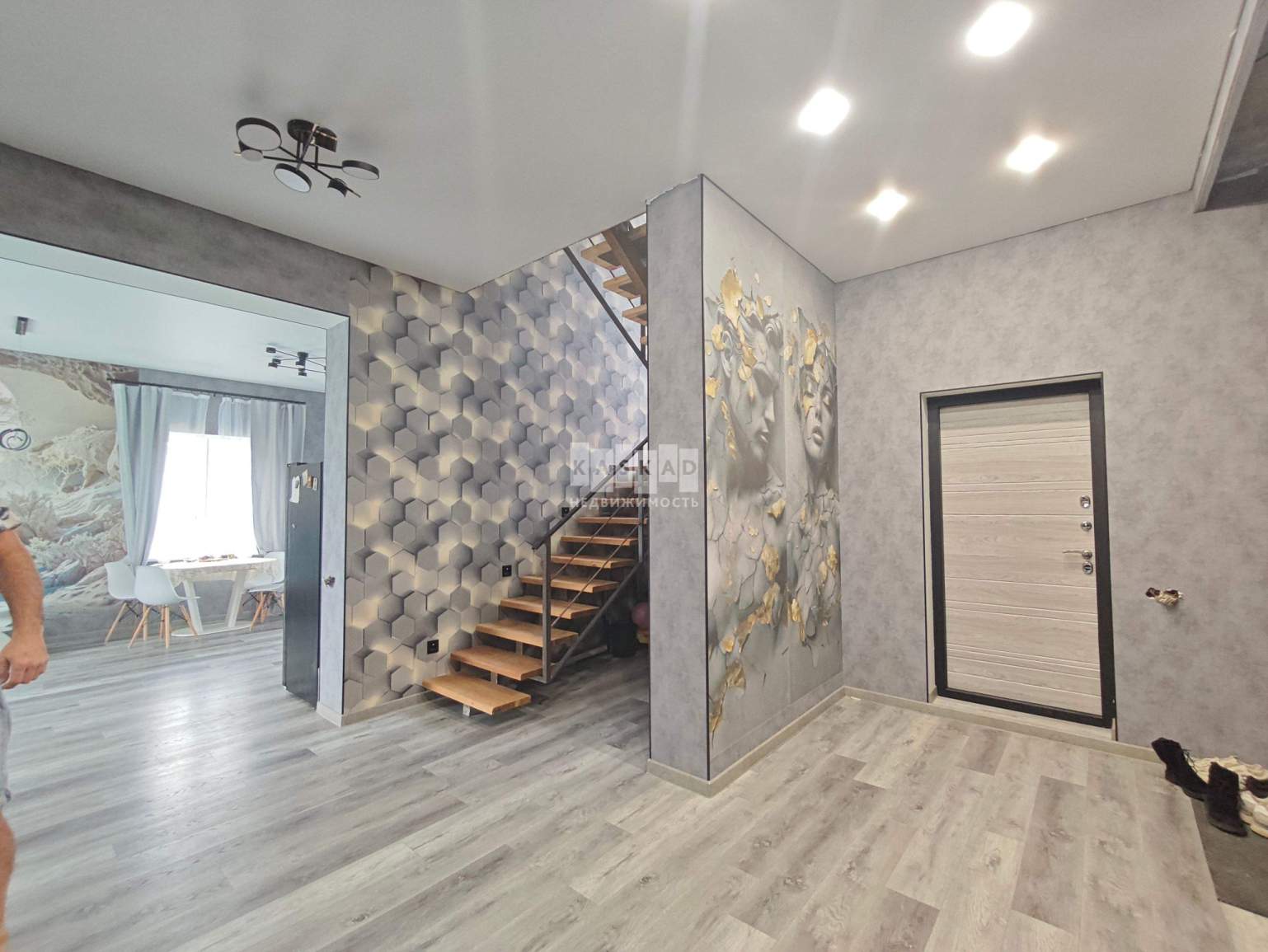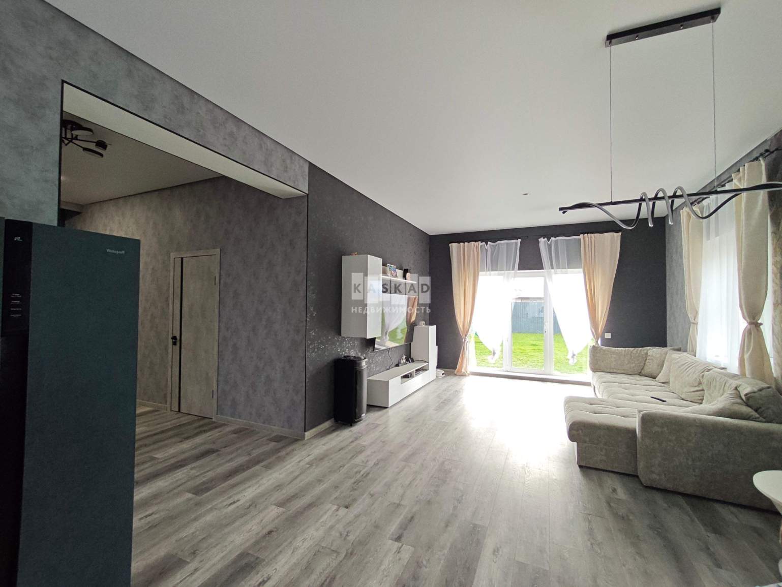 1 этаж - входная группа + просторная кухня гостиная с выходном на благоустроенный участок, где располагается бассейн + изолированная комната + санузел.