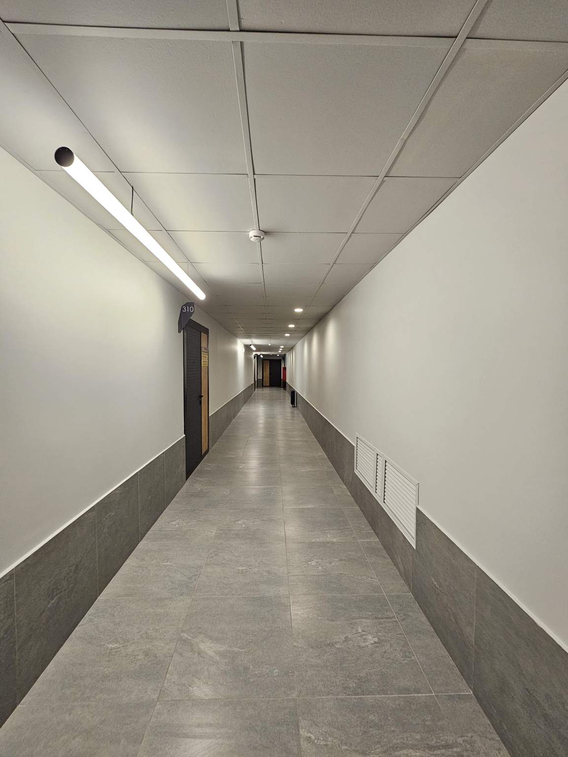 Есть все необходимые коммуникации: центральное отопление, электроэнергия, водопровод, канализация и мокрые точки. Высота потолков - 3 м. На этажах расположены отдельные санузлы. Доступ в интернет предоставляется через высокоскоростной оптоволоконный кабель.