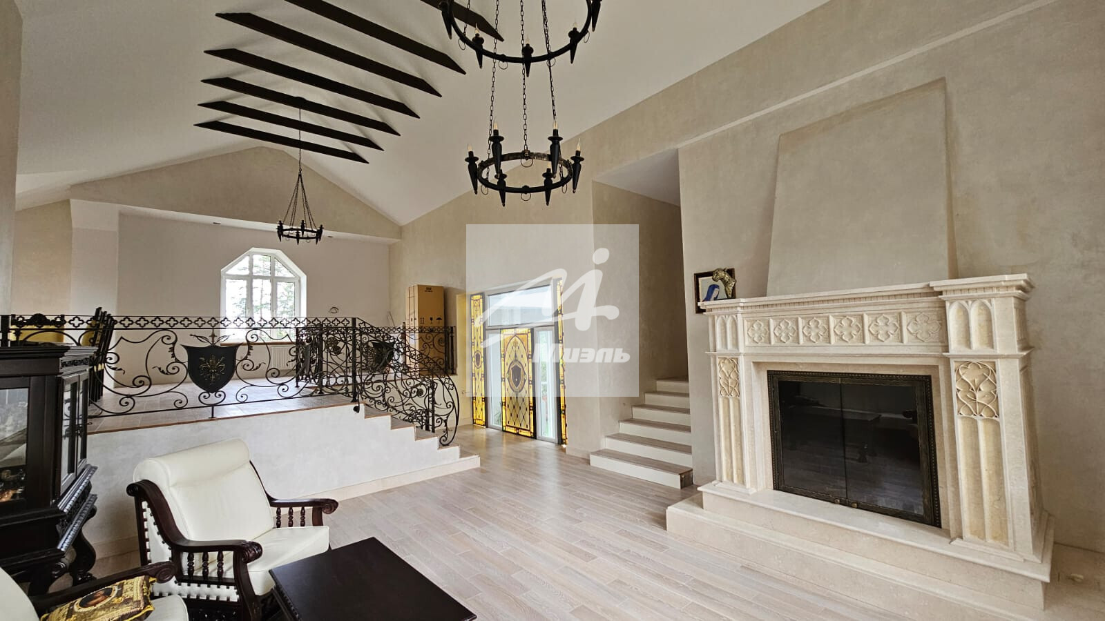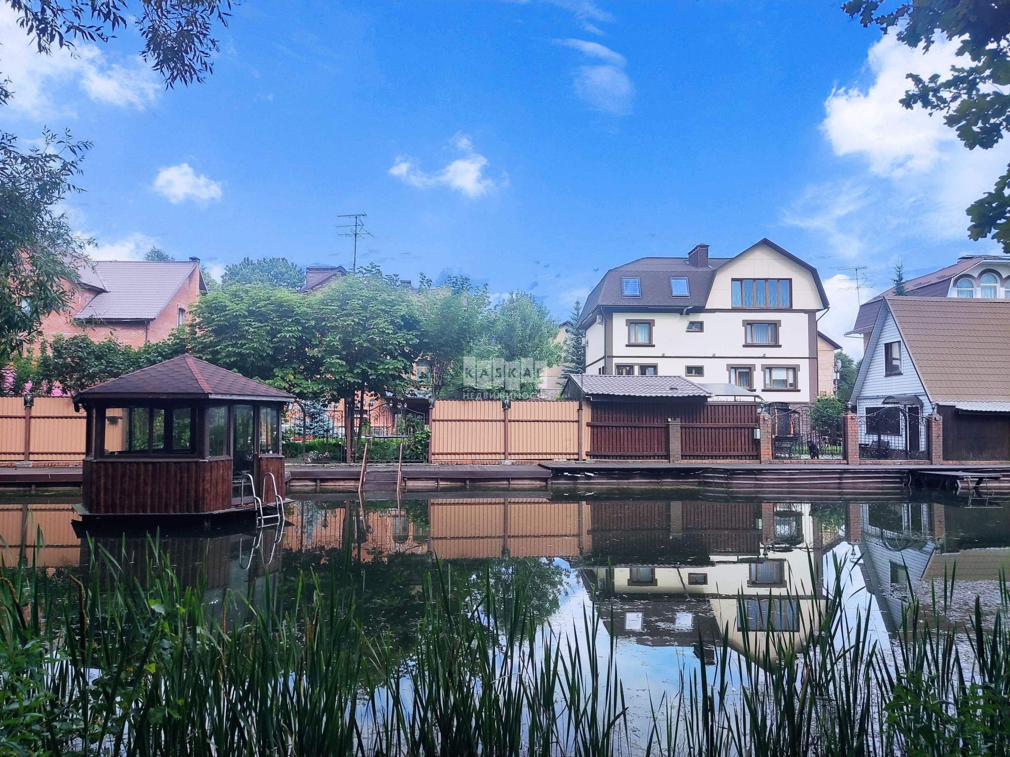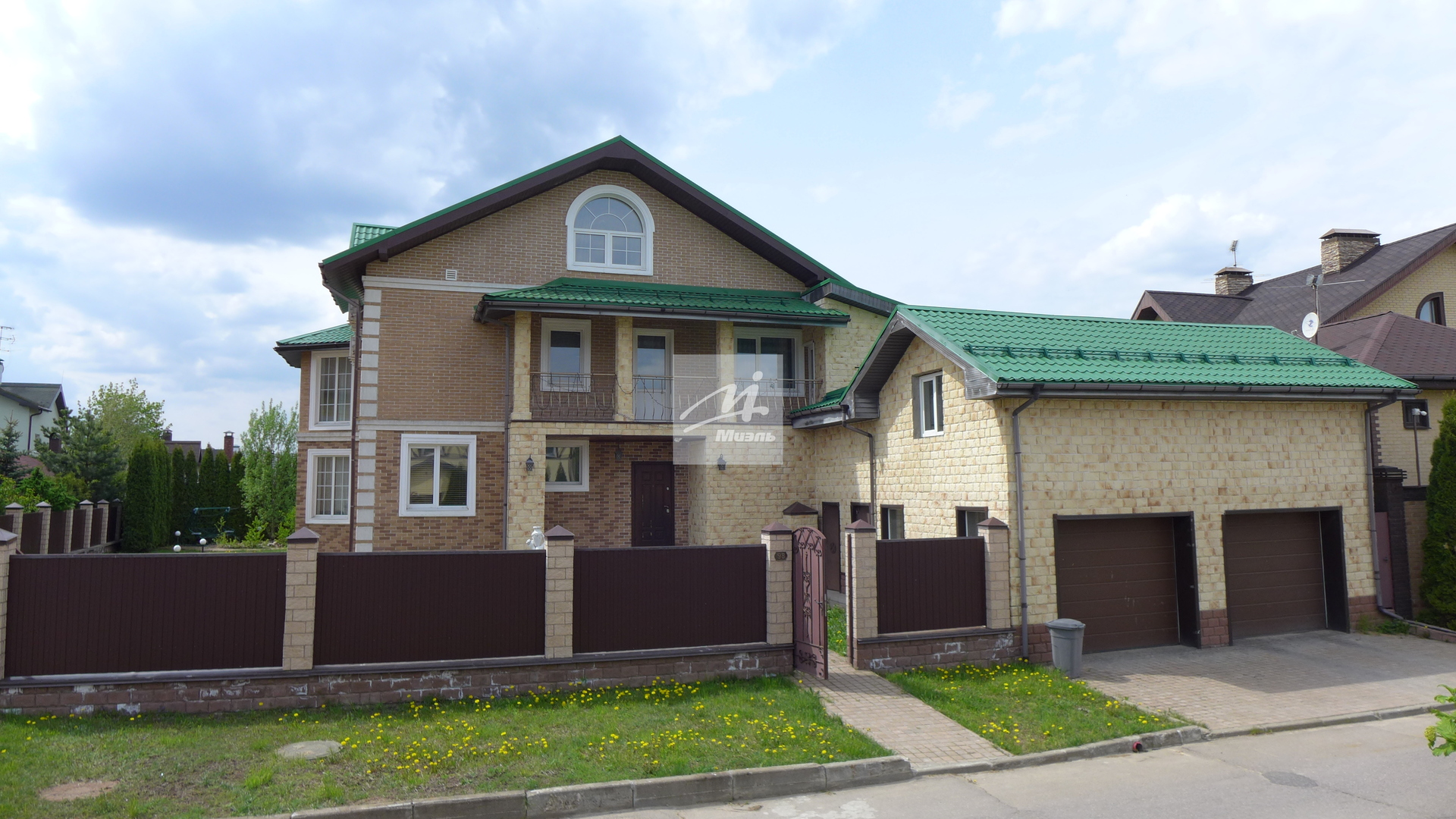 Общая площадь дома составляет 584 кв. м. Он расположен на ухоженном земельном участке в 18 соток. Дом построен по комбинированной технологии: первый этаж – надежный кирпич, второй – теплый утепленный брус, перекрытия выполнены из железобетонных плит, а кровля покрыта натуральной черепицей, что гарантирует долговечность и отличную теплоизоляцию.