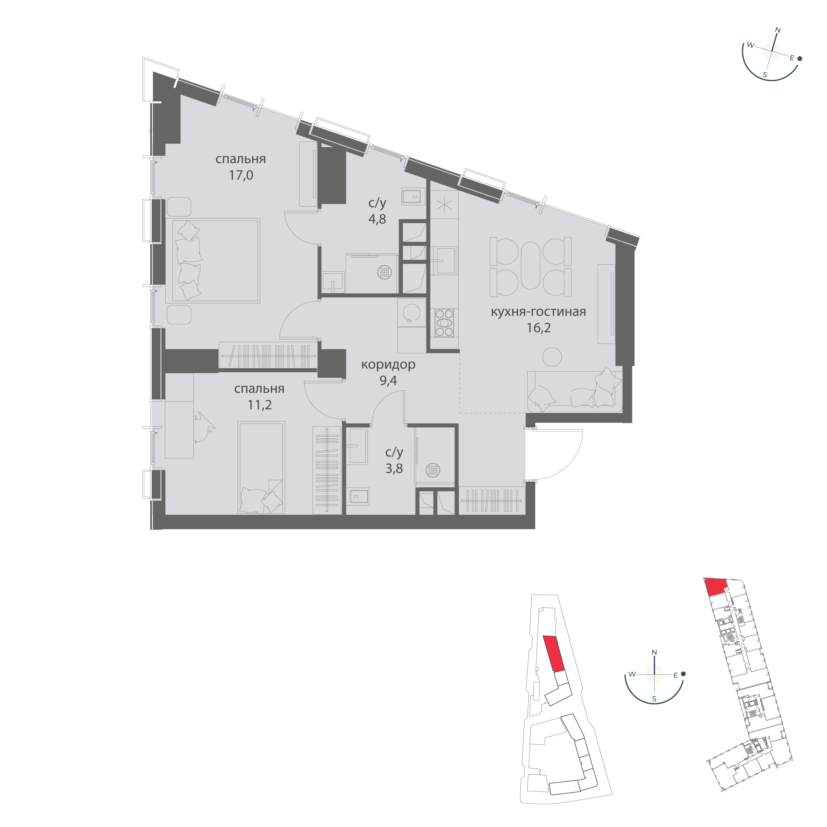 Купить 3к квартиру 76 м² в ЖК Дмитровское небо