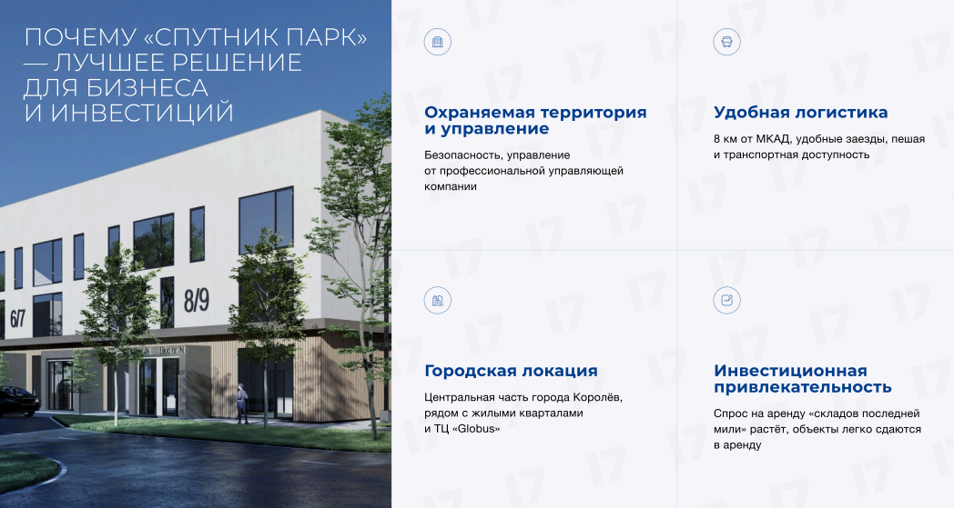 Cклад + шоу-рум + производство + офис в одном пространстве, собственная наземная парковка на территории комплекса. Идеально под инвестиции или собственный бизнес.