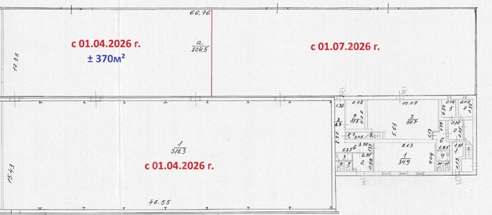Возможность расширения с 01.07.2026 до 1542,8м² + Офис 173,0м²