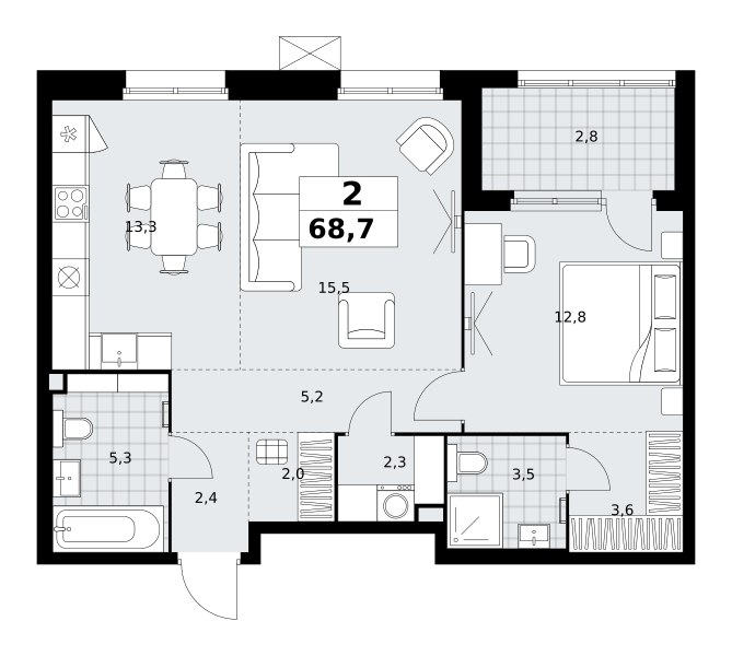 Купить 2к квартиру 70 м²